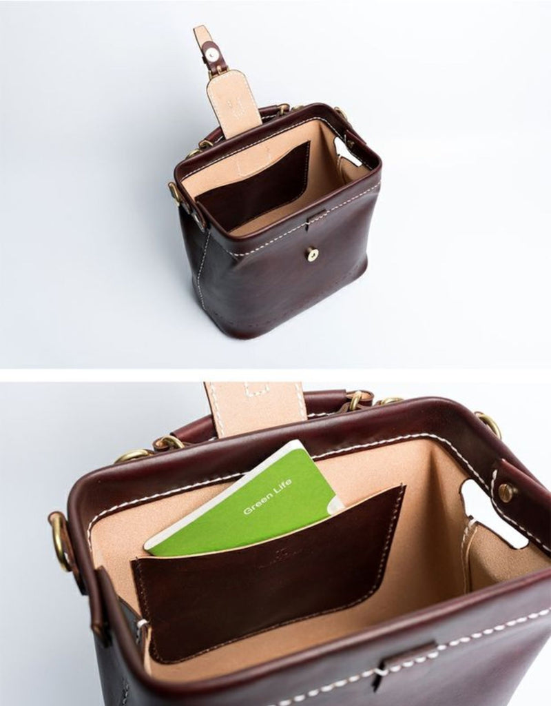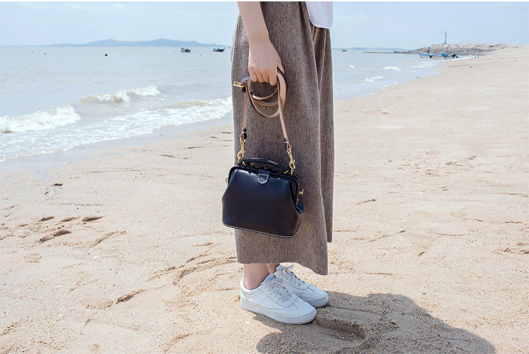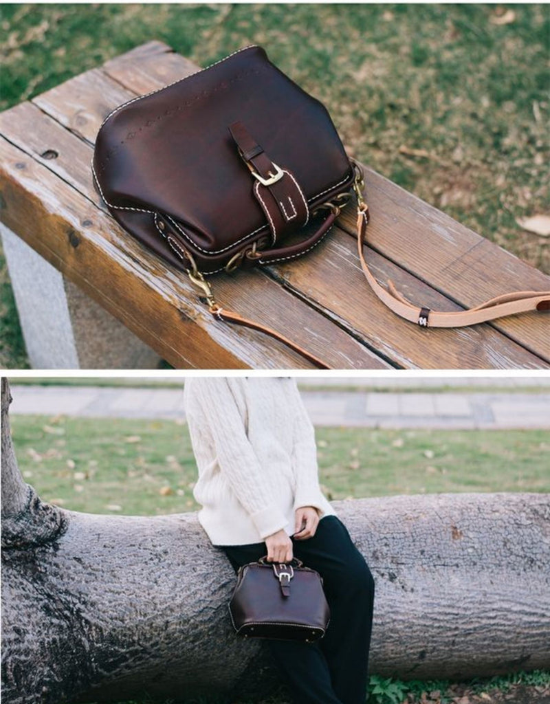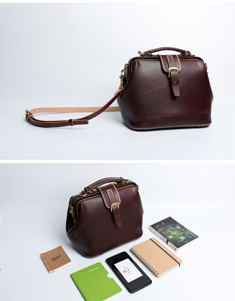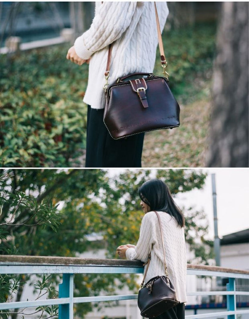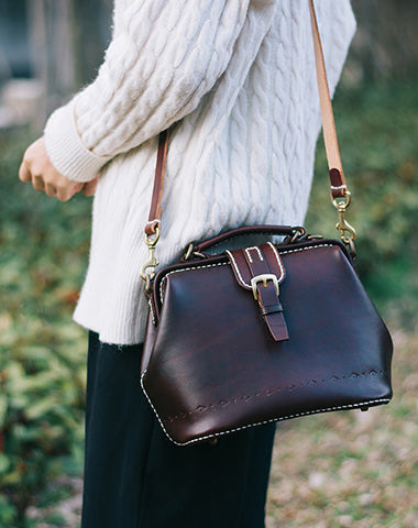 Style:Handmade Womens Coffee Leather doctor Handbag shoulder doctor bags Purse for women