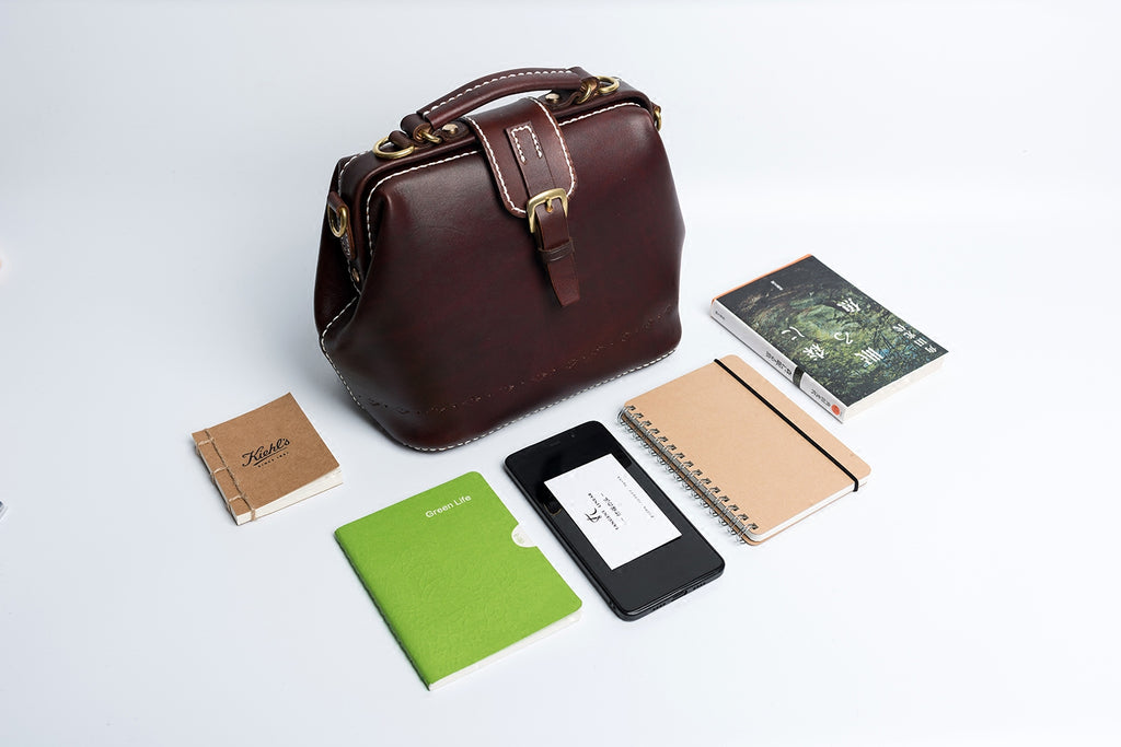 Design: Handmade Womens Coffee Leather doctor Handbag shoulder doctor bags Purse for women
