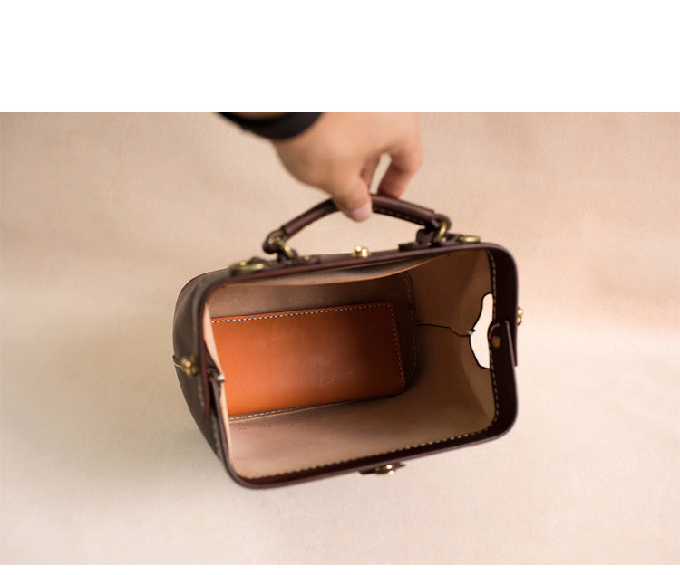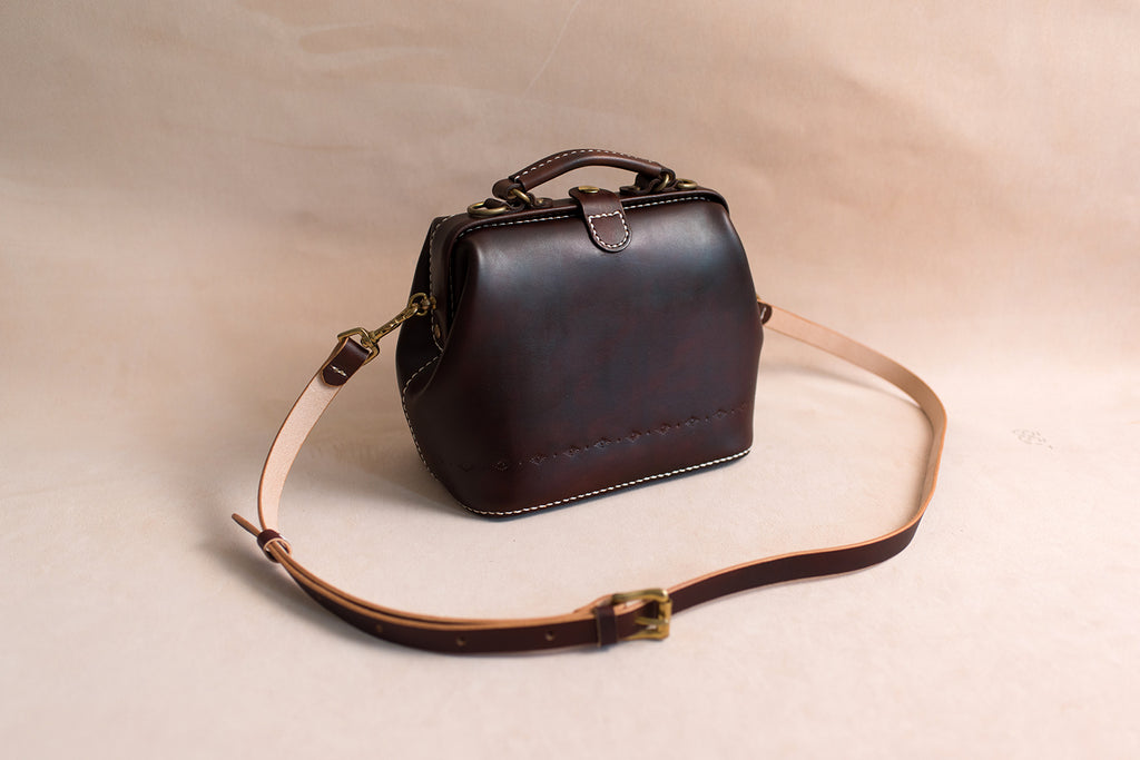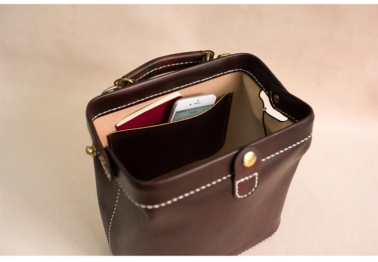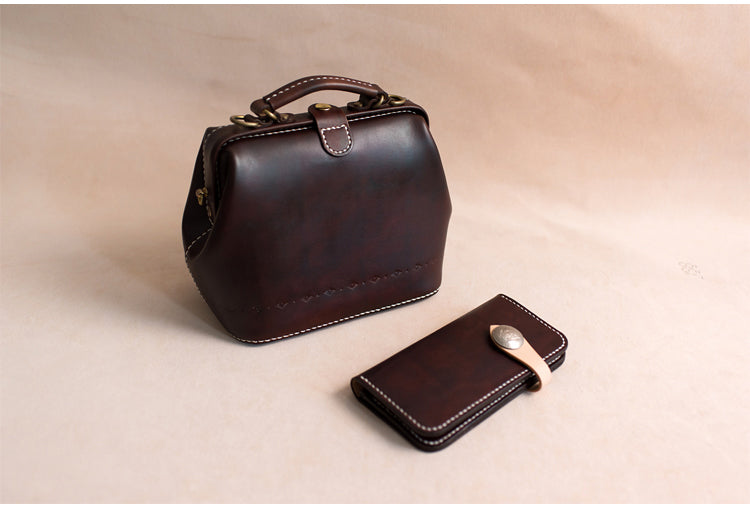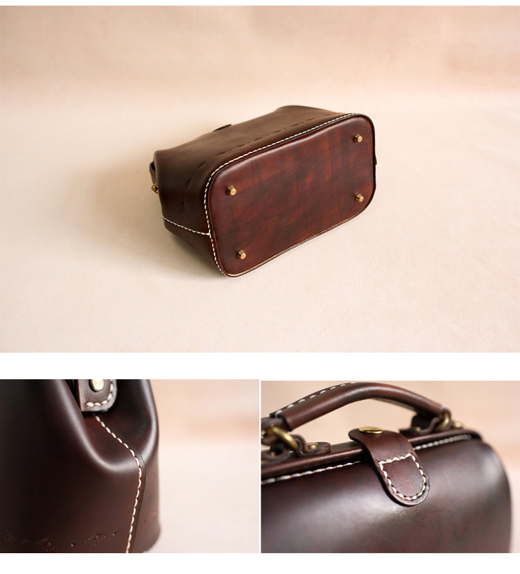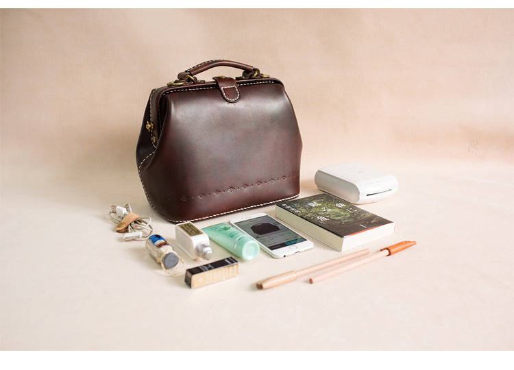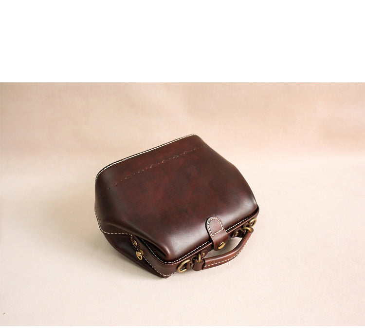 Style:Handmade Womens Coffee Leather doctor Handbag shoulder doctor bags Purse for women