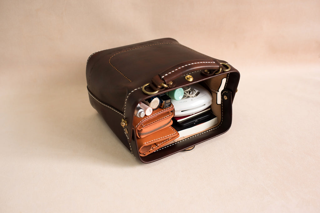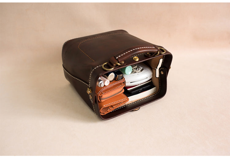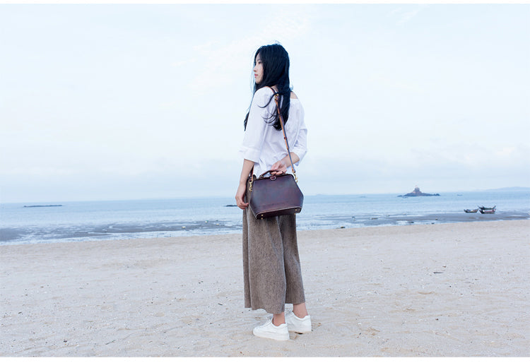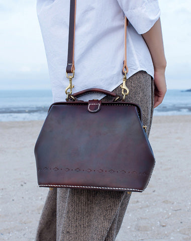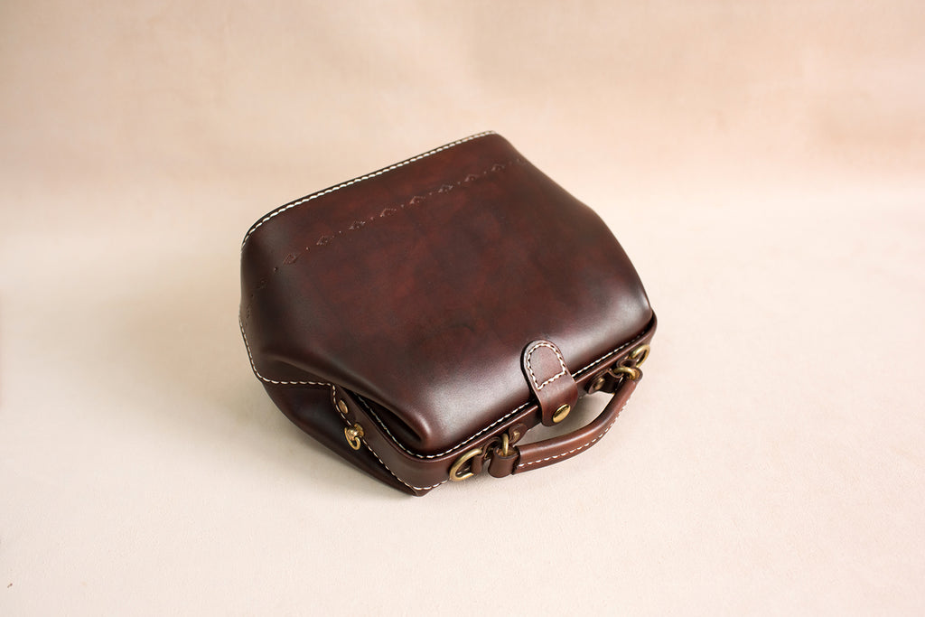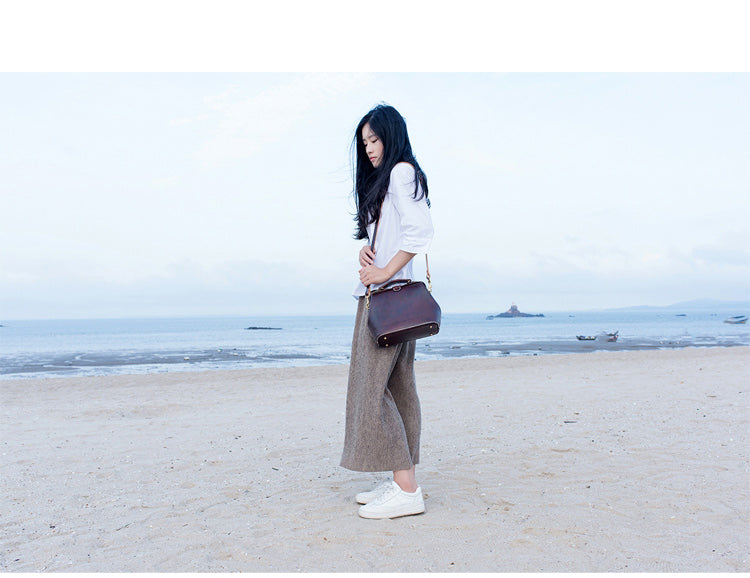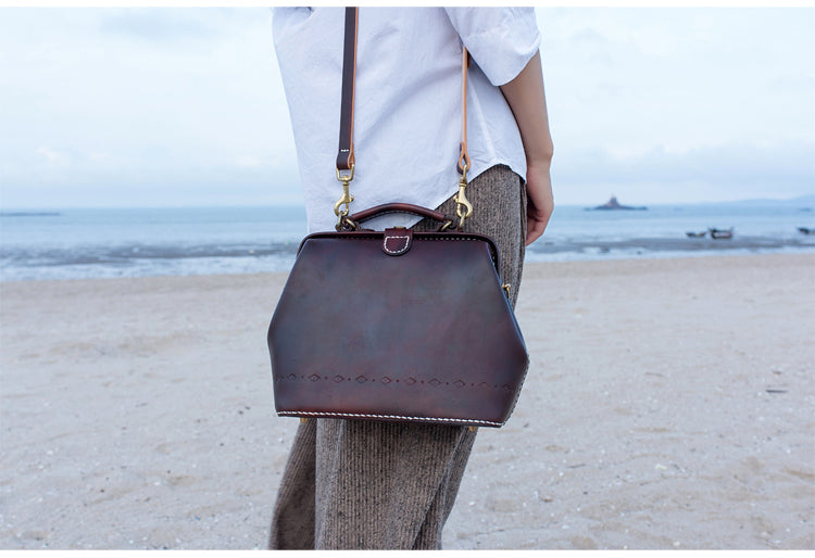 Style:Handmade Womens Coffee Leather doctor Handbag shoulder doctor bags Purse for women