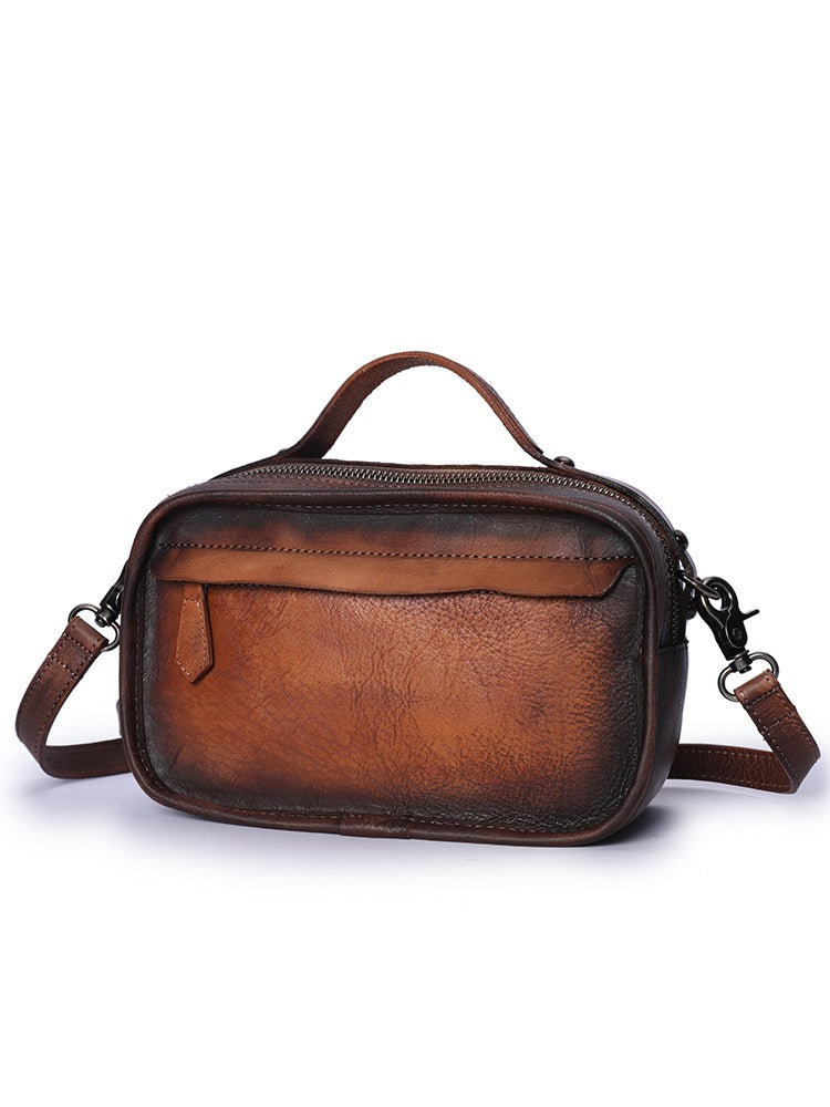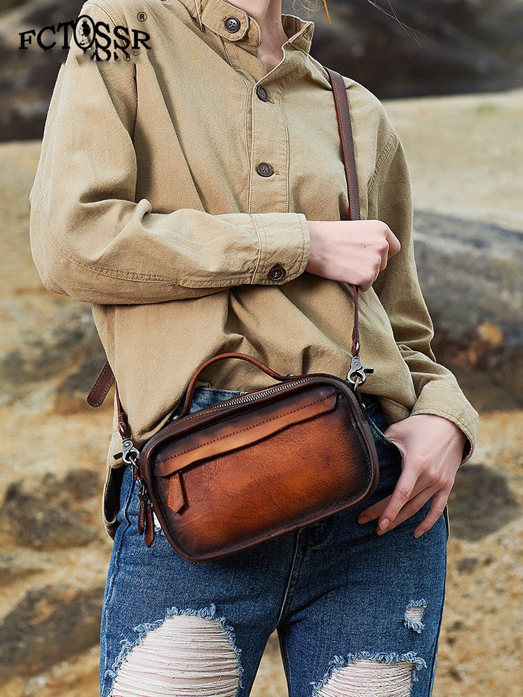 Design: Handmade Womens Leather Mini Satchel Shoulder Bag Best Handbag Cube Crossbody Purses for Ladies