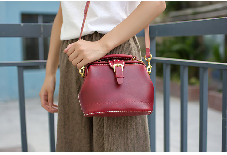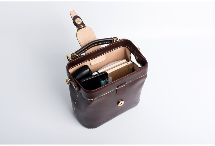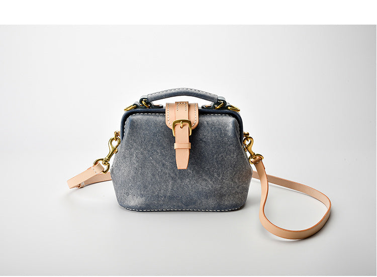 Style: Handmade Womens Gray Leather Small doctor Purse Gray shoulder doctor bags for women