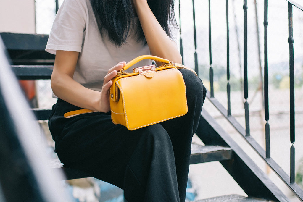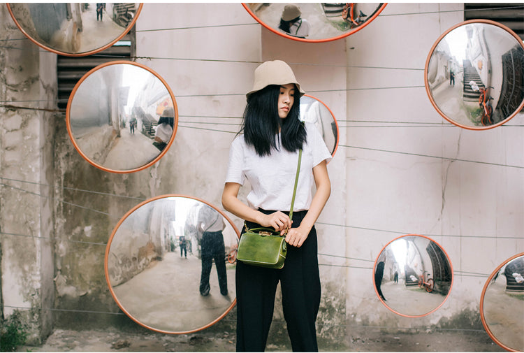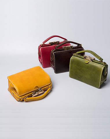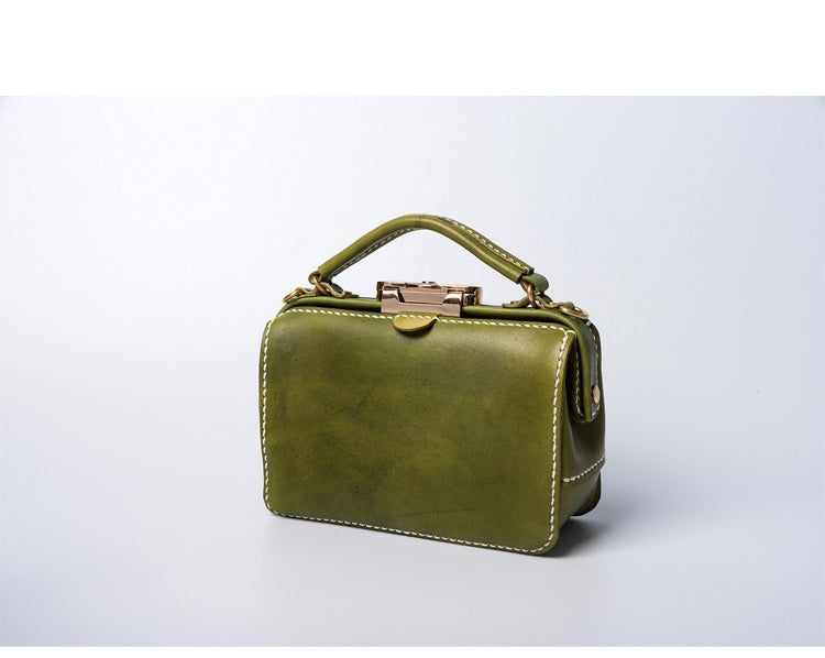 Handmade Womens Green Leather Doctor Handbag Purse Small Side Bag Doctor Bags for Women