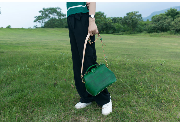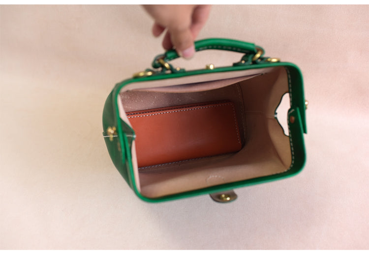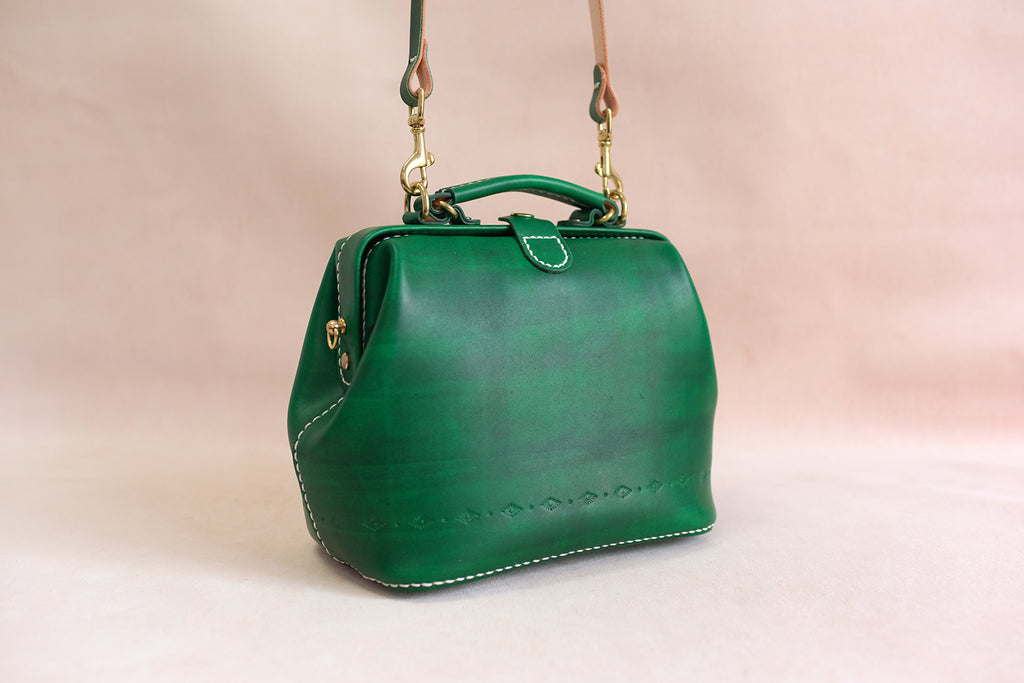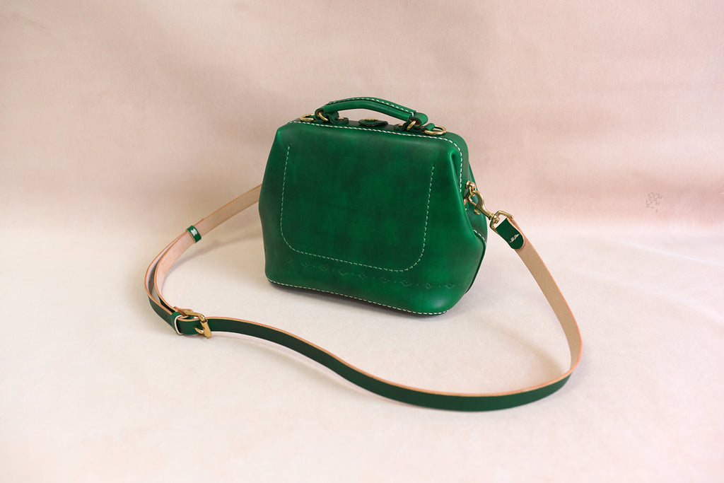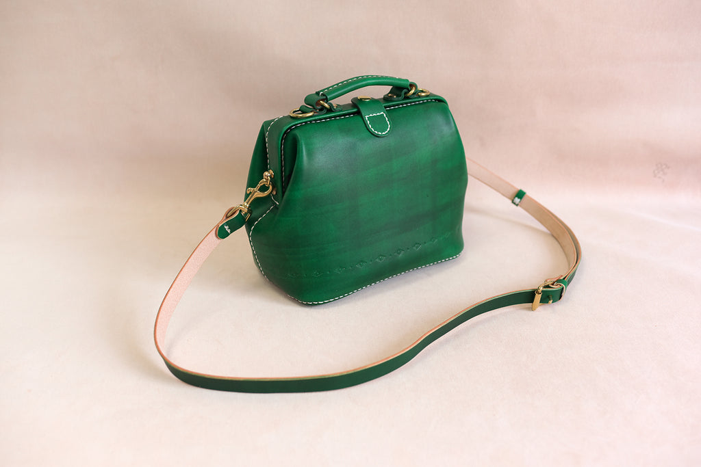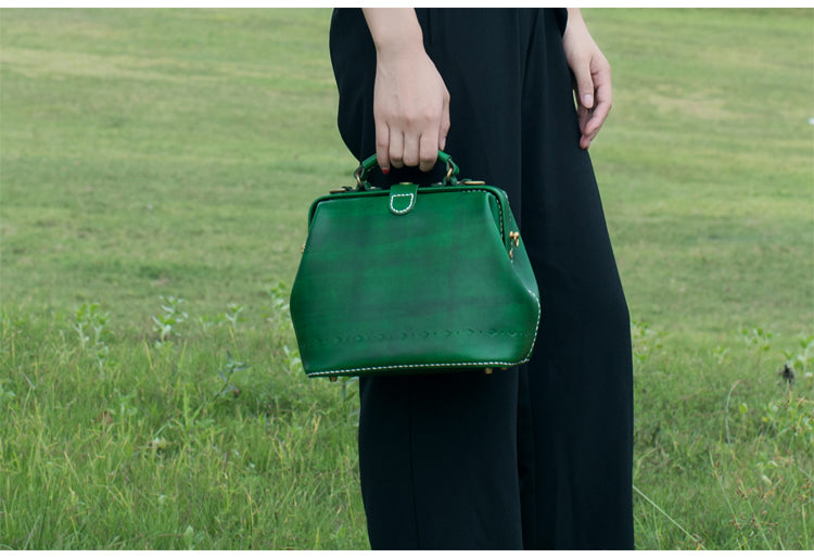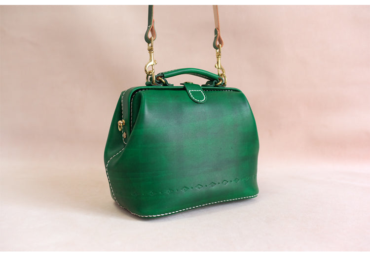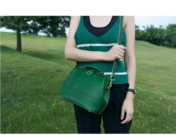 Style:Handmade Womens Green Leather doctor Handbag shoulder doctor bags Purse for women