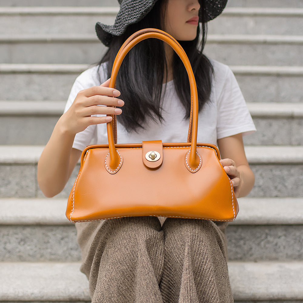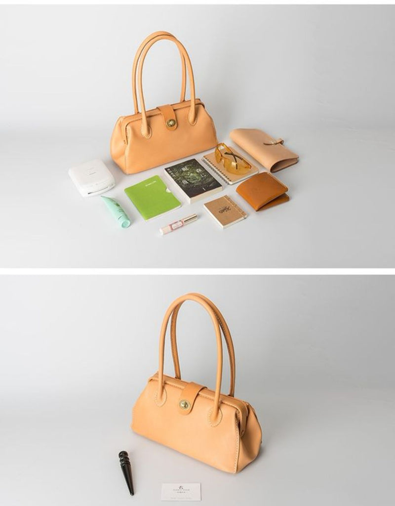 Style: Handmade Womens Leather Doctor Handbag Purse Tan Shoulder Bag Doctor Bags for Women