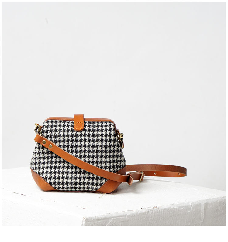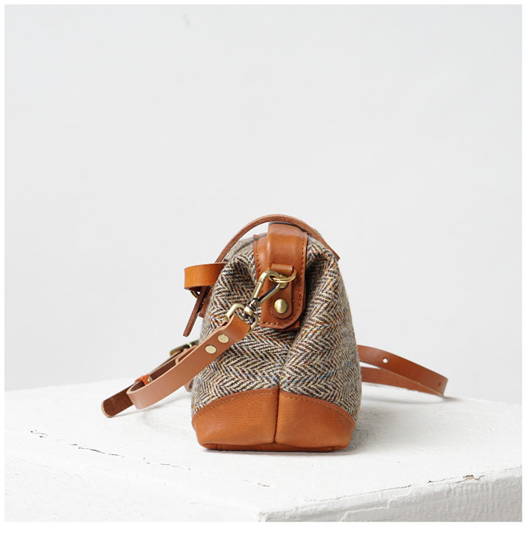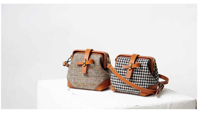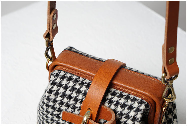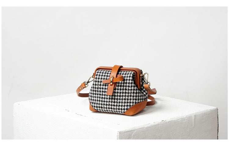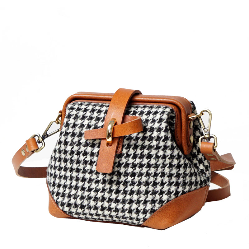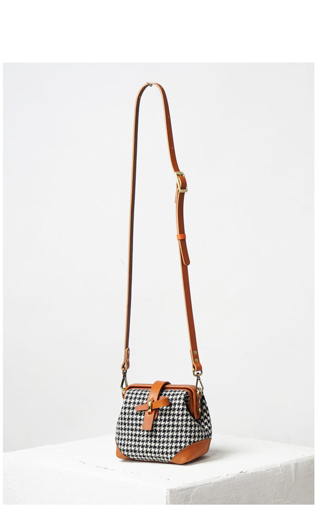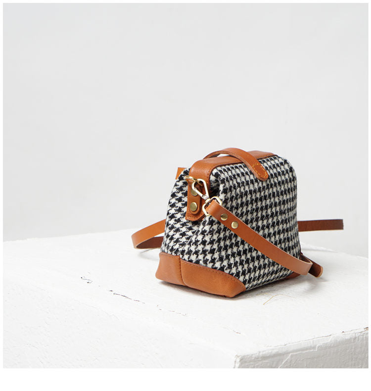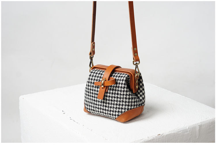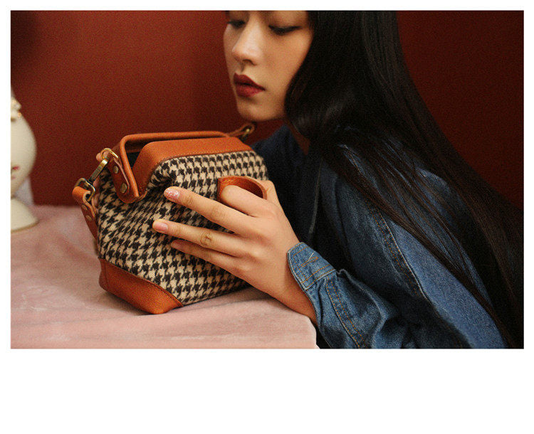 Style: Handmade Womens Leather Tweed Doctor Handbag Small Side Purses Doctor Purse for Women