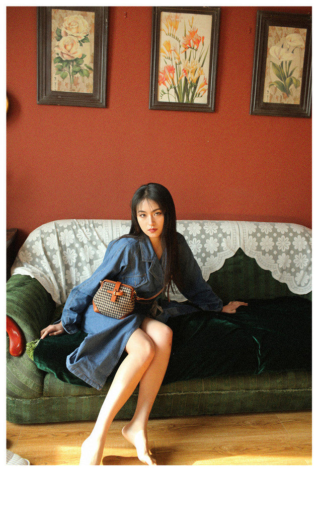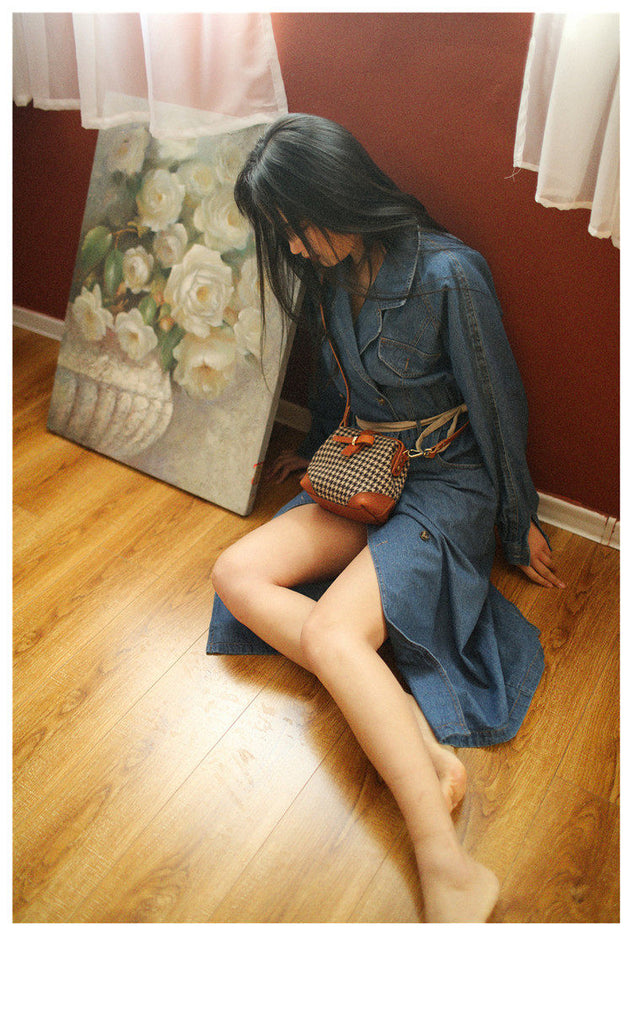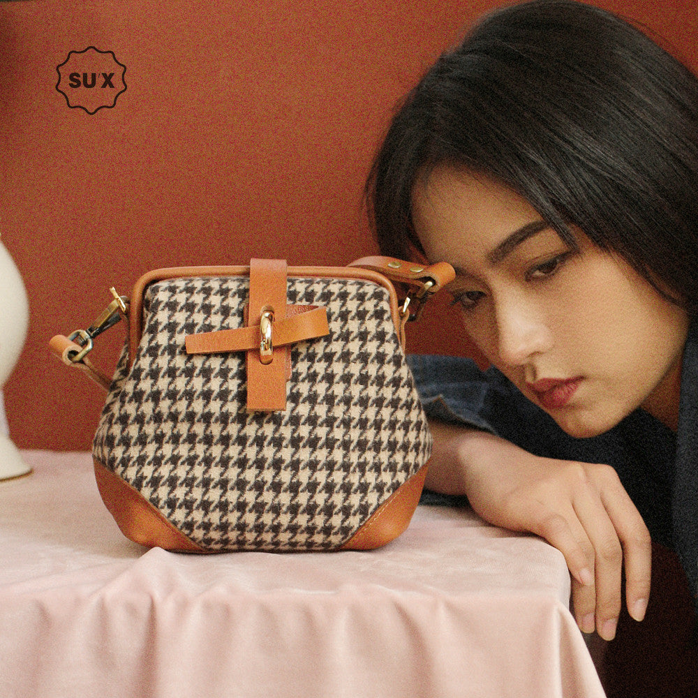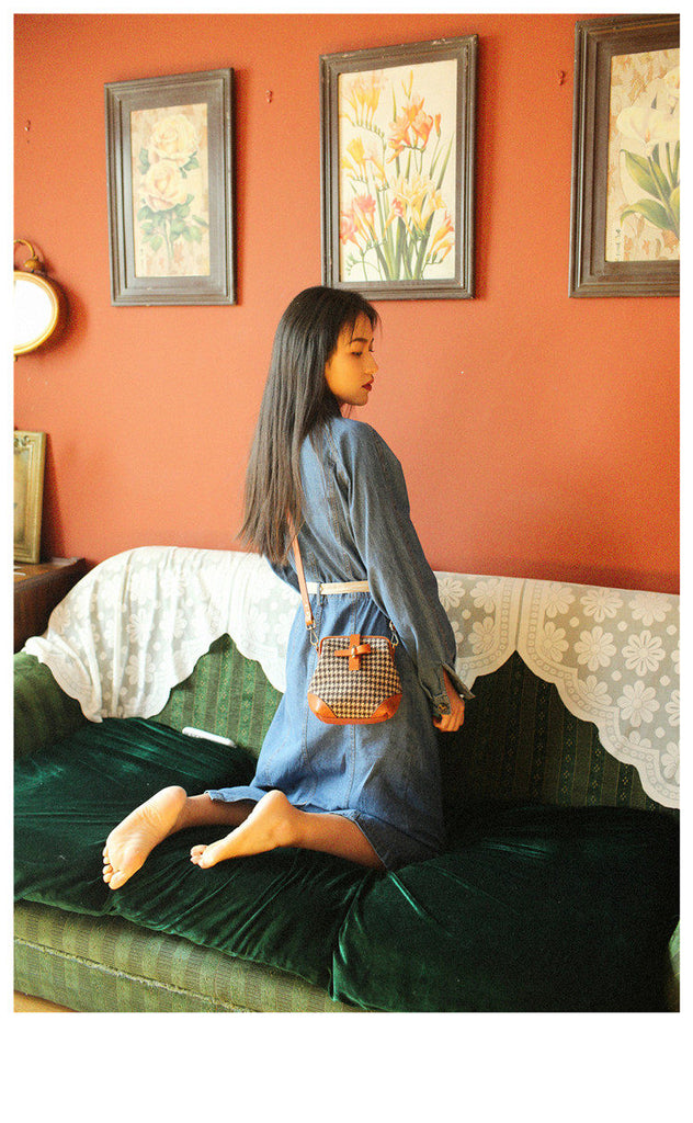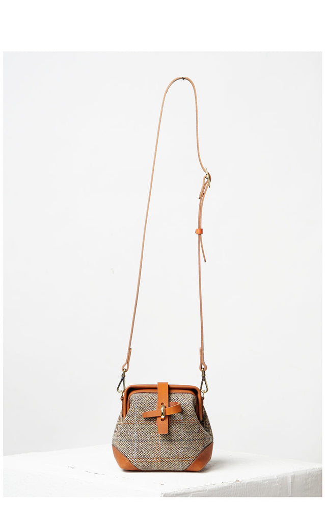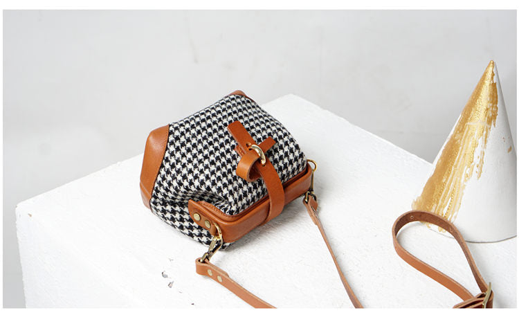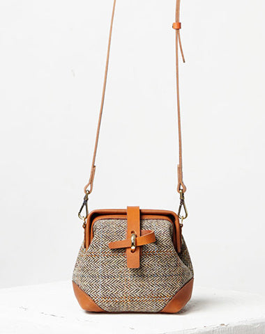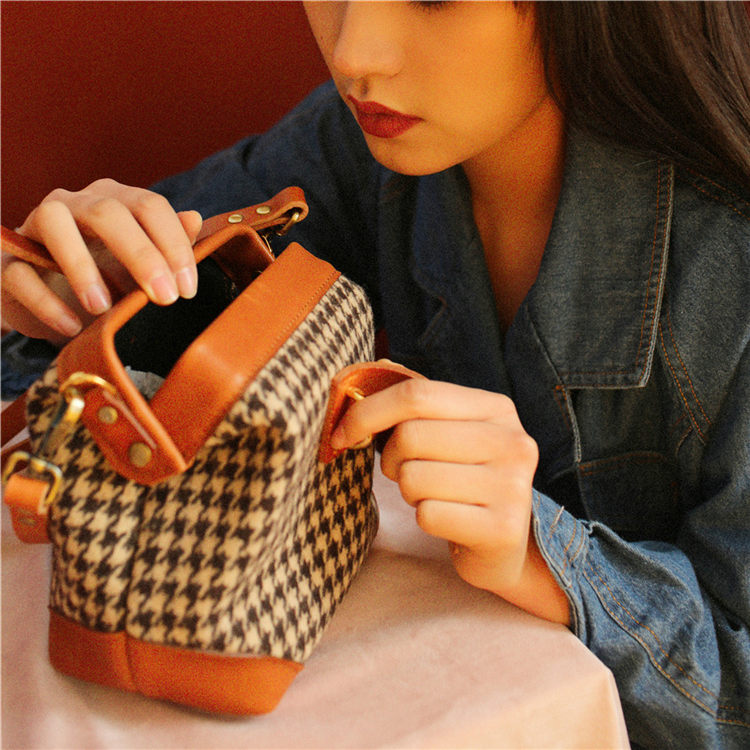 Style: Handmade Womens Leather Tweed Doctor Handbag Small Side Purses Doctor Purse for Women