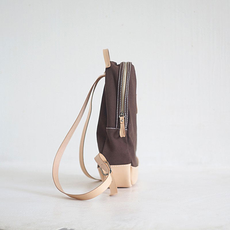 Style: HANDMADE WOMENS Mini CANVAS LEATHER BACKPACK TRAVEL BACKPACK FOR WOMEN