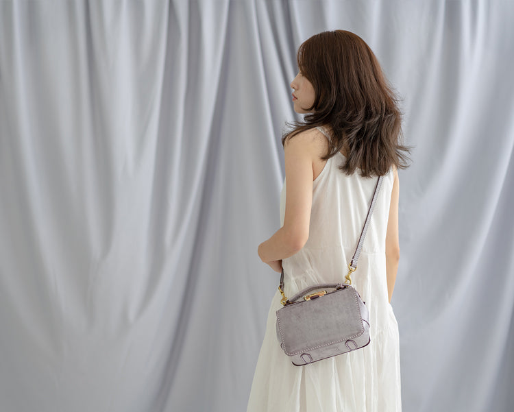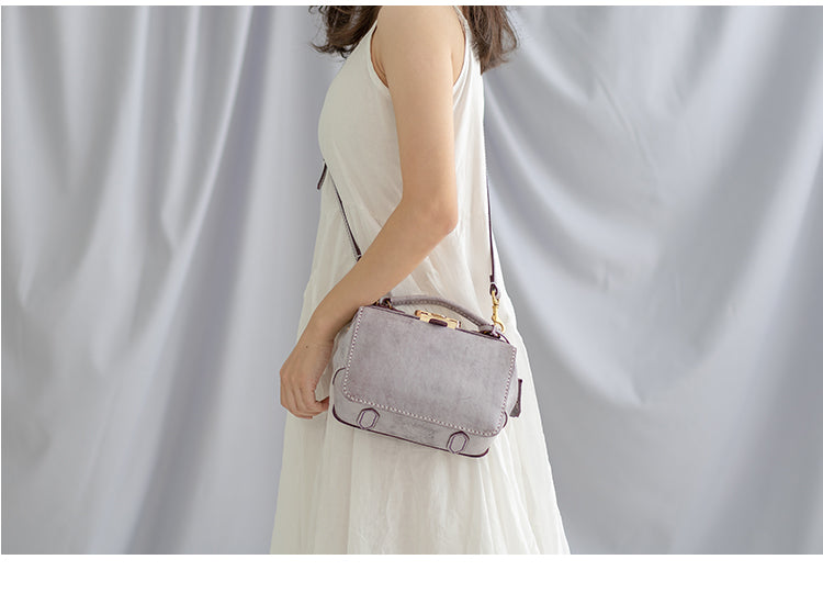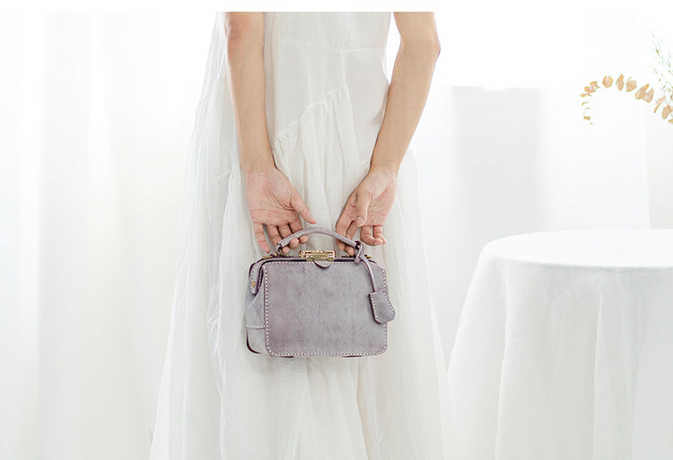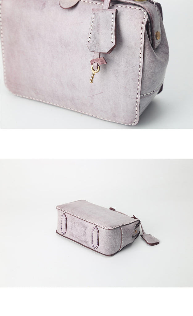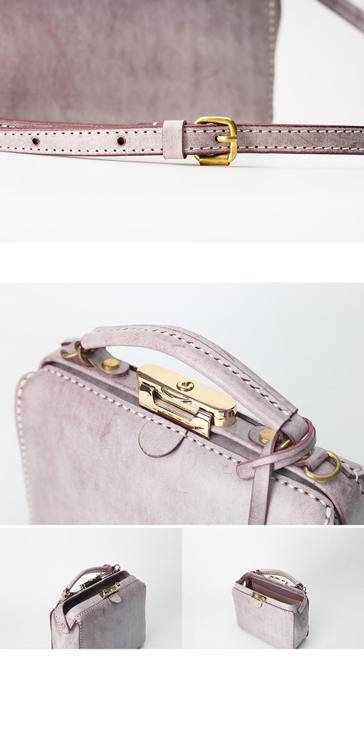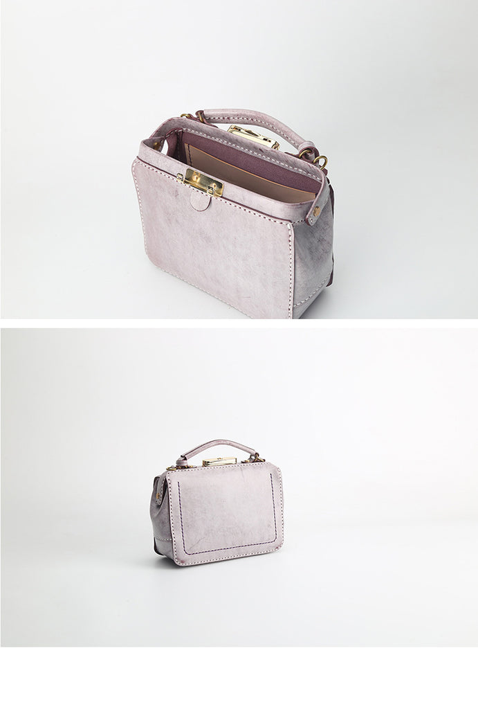 Style: Handmade Womens Purple Leather Doctor Handbag Purse Small Side Bag Doctor Purse for Women