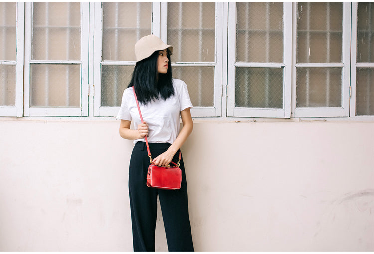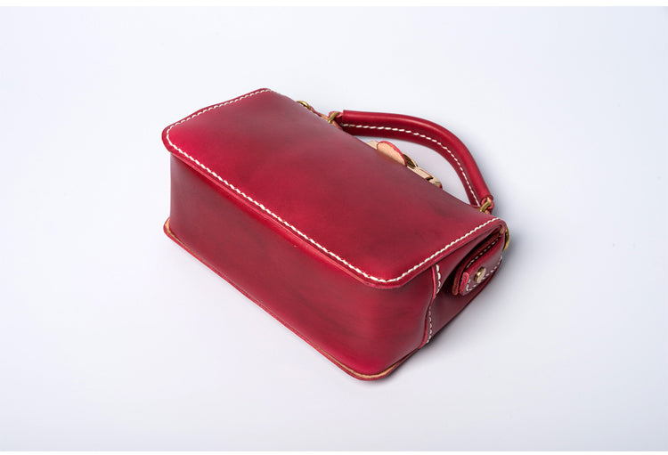 Style: Handmade Womens Red Leather Doctor Purse Small Side Bag doctor bags for women