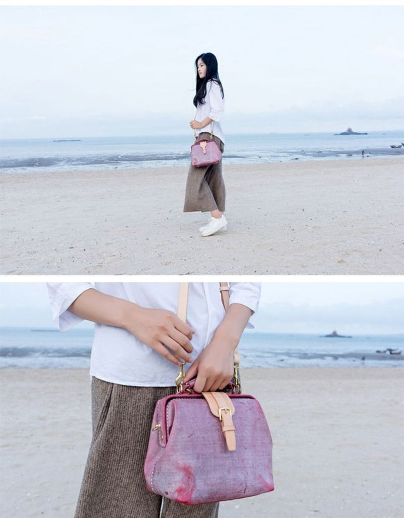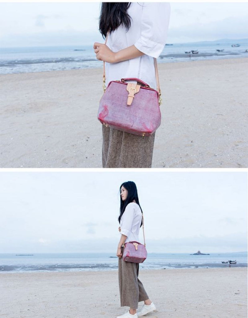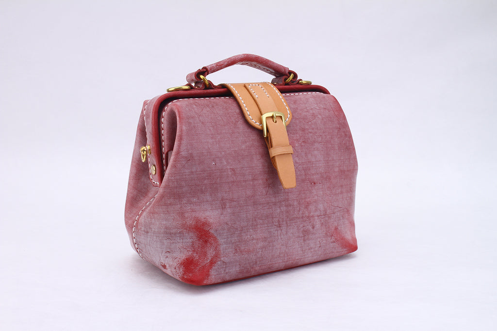 Handmade Womens Red Leather doctor Handbag shoulder doctor bags Purse for women