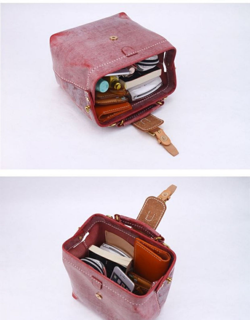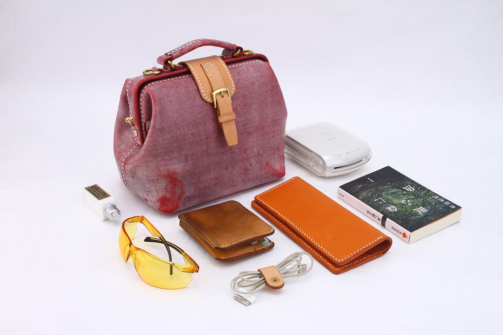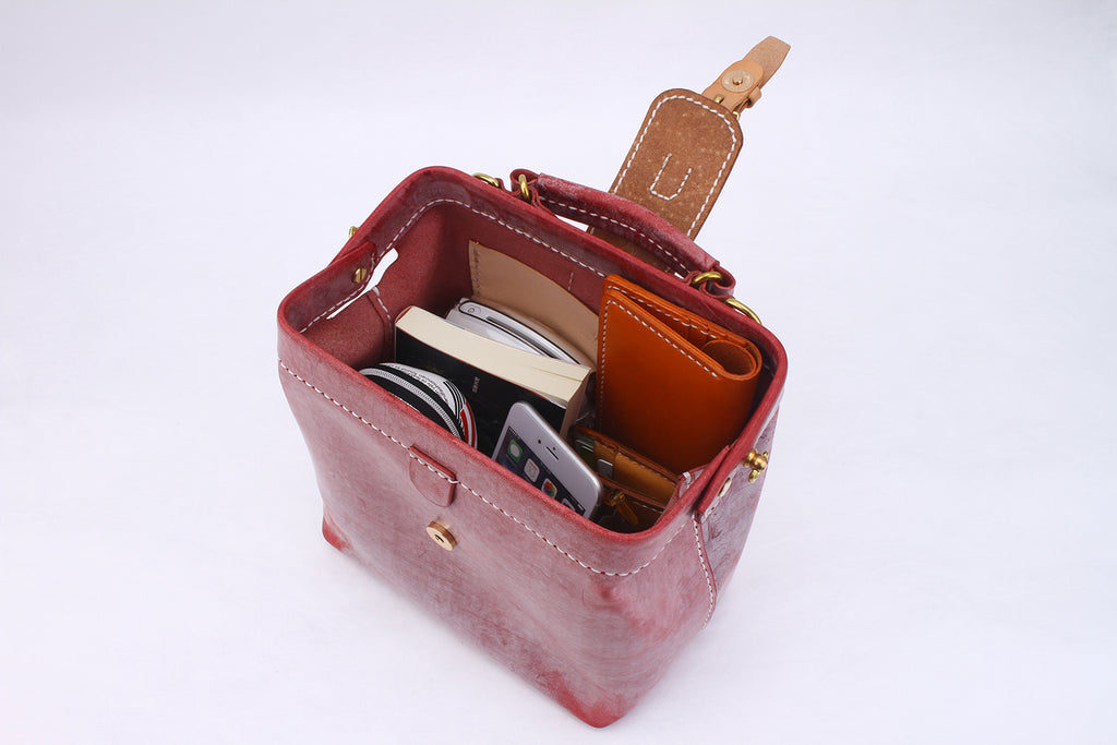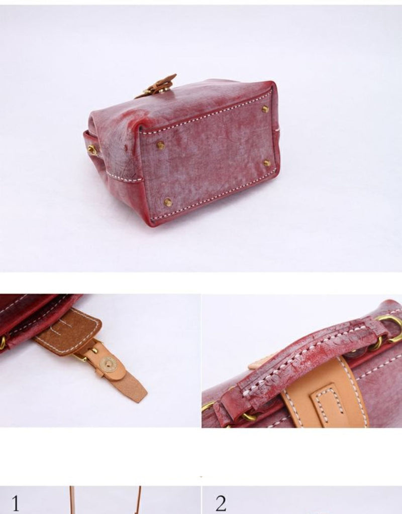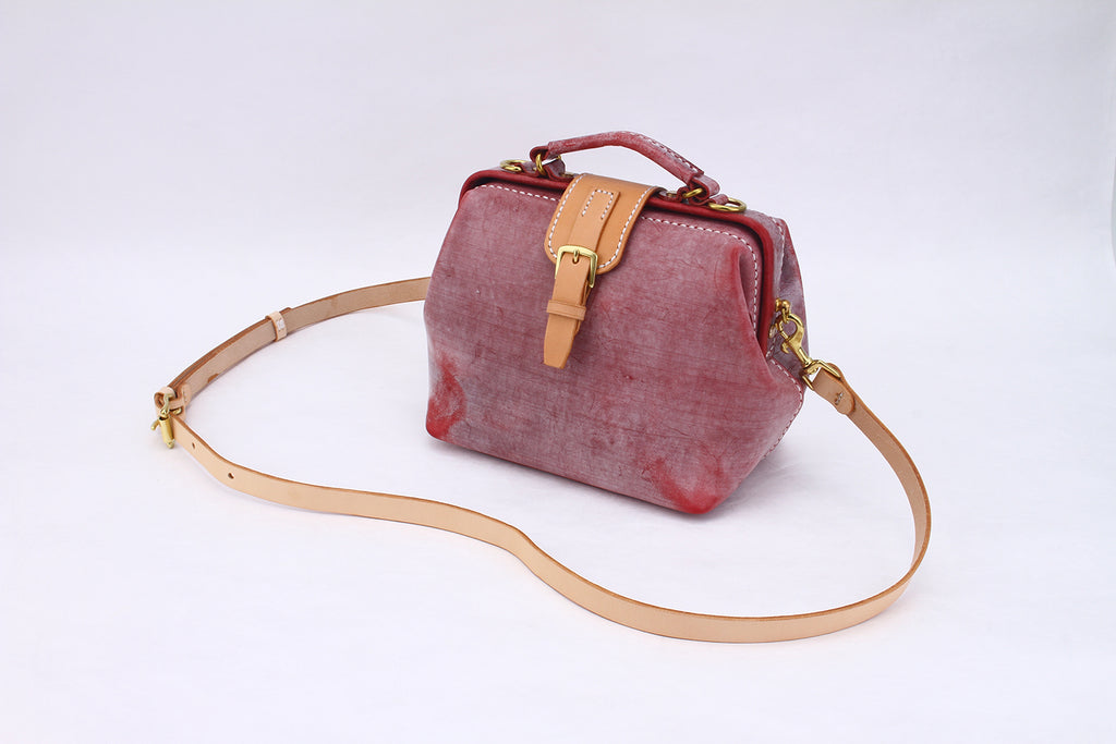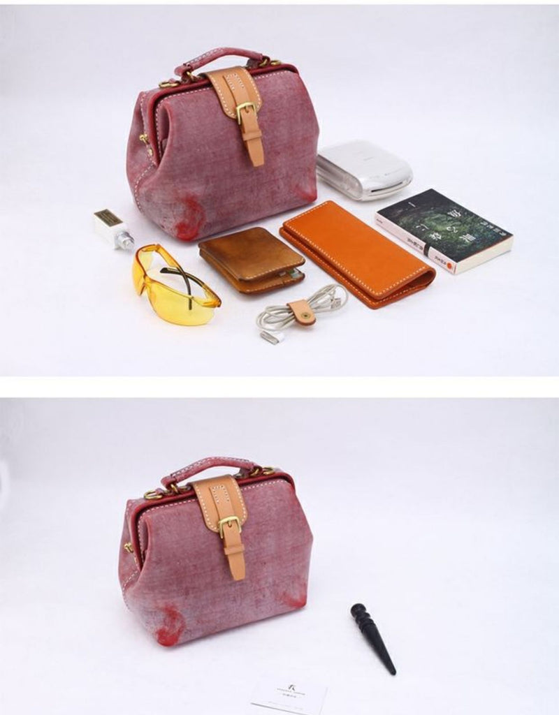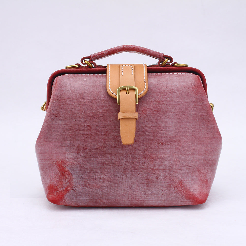 Style:Handmade Womens Red Leather doctor Handbag shoulder doctor bags Purse for women