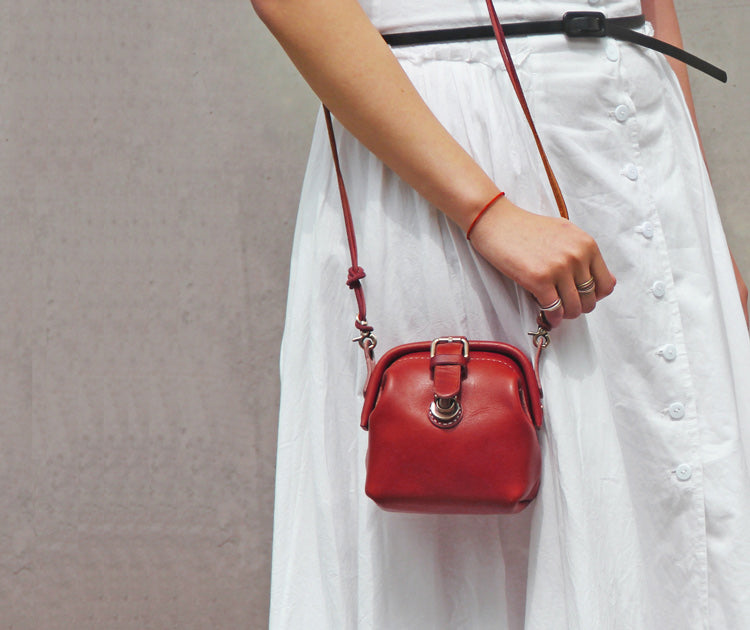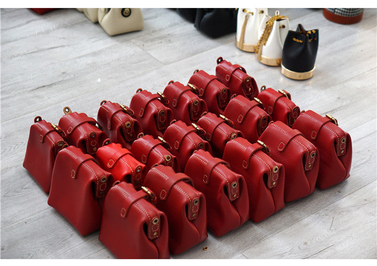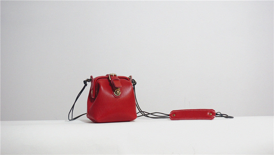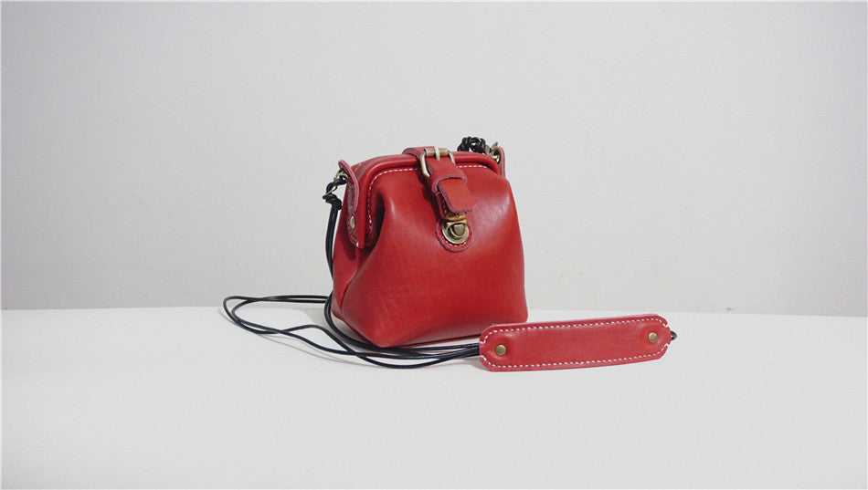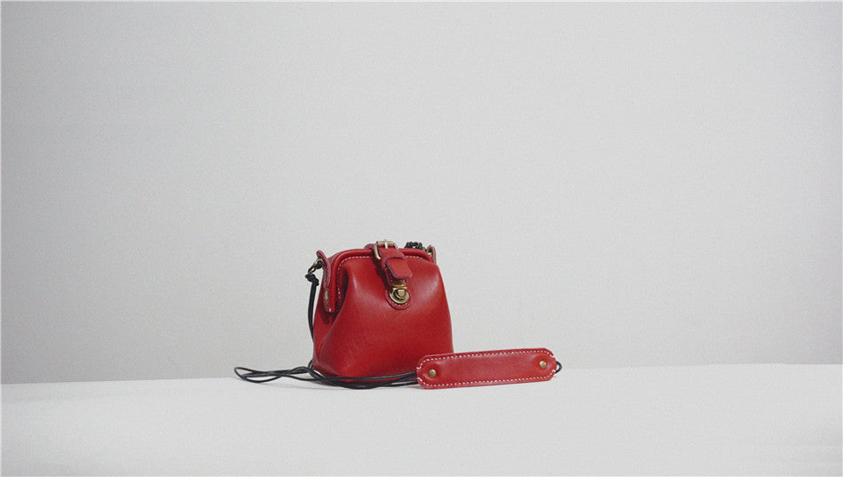 Style: Handmade Womens Red Leather Doctor Handbag Small Side Purses Doctor Purse for Women