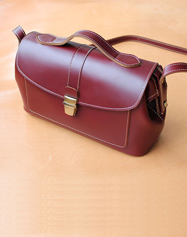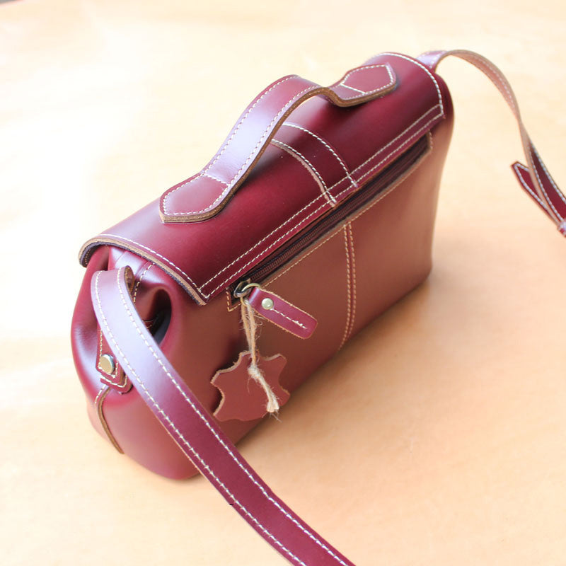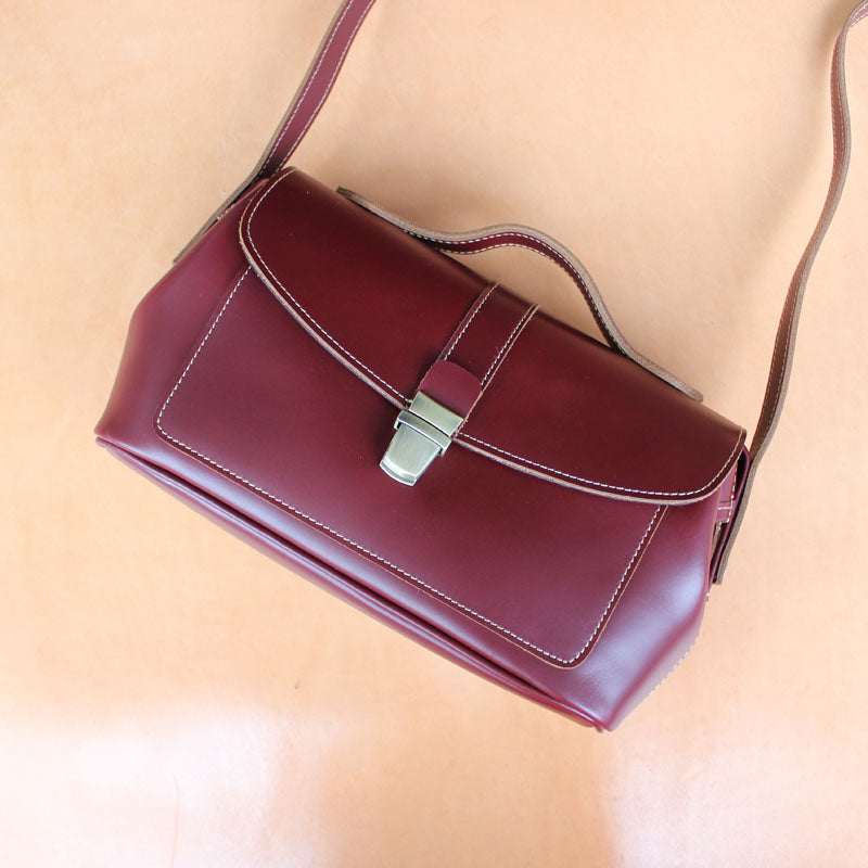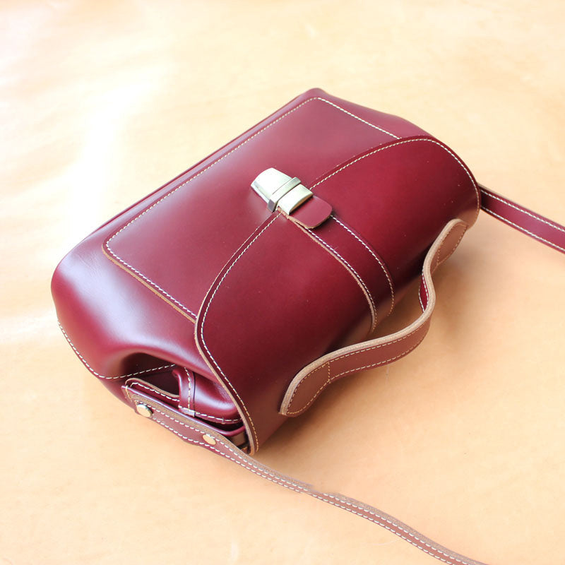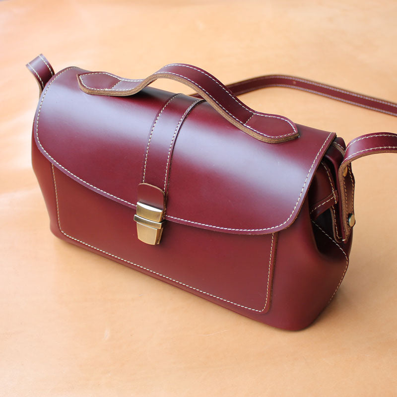 Style: Handmade Womens Red Leather Doctor Shoulder Purses Claret Doctor Crossbody Purses for Women