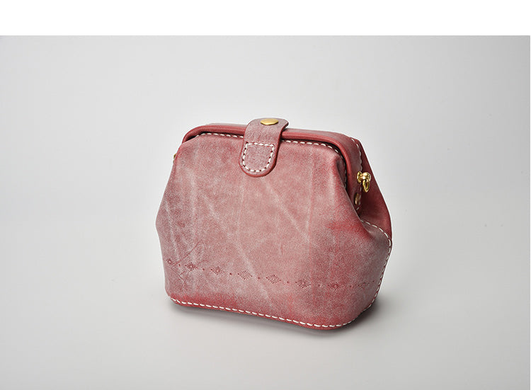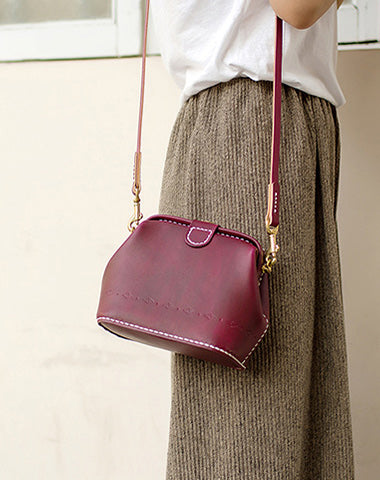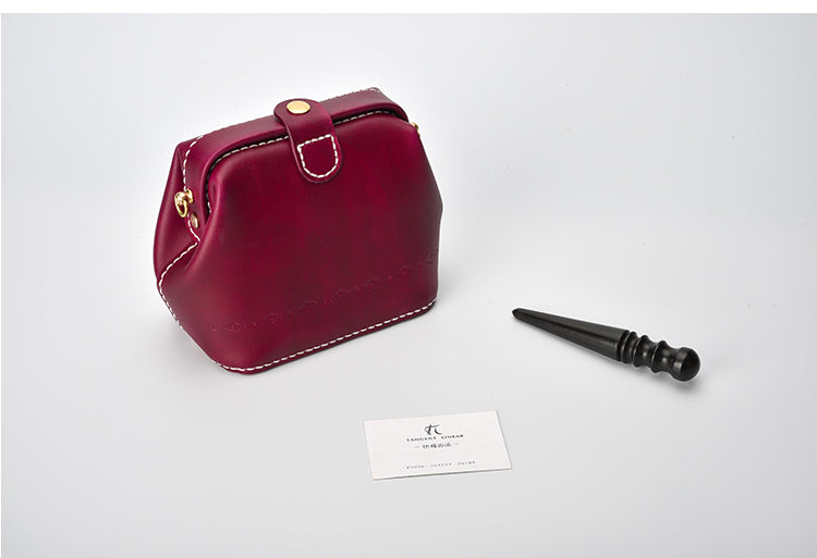 Handmade Womens Rose Red Leather Small doctor Purse shoulder doctor bags for women