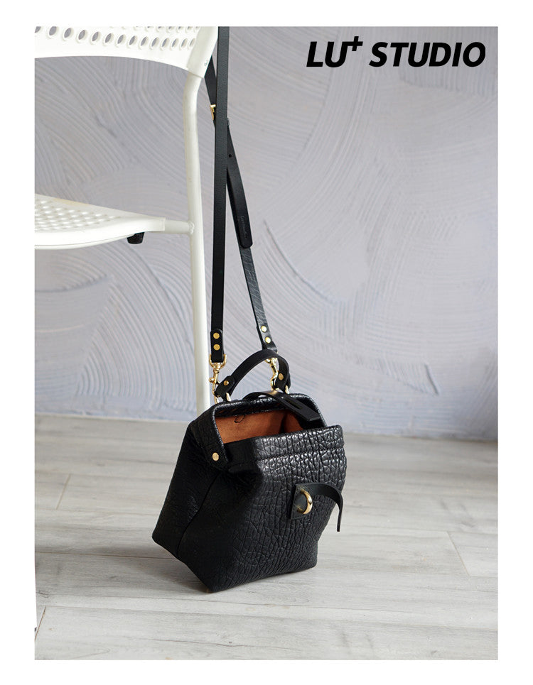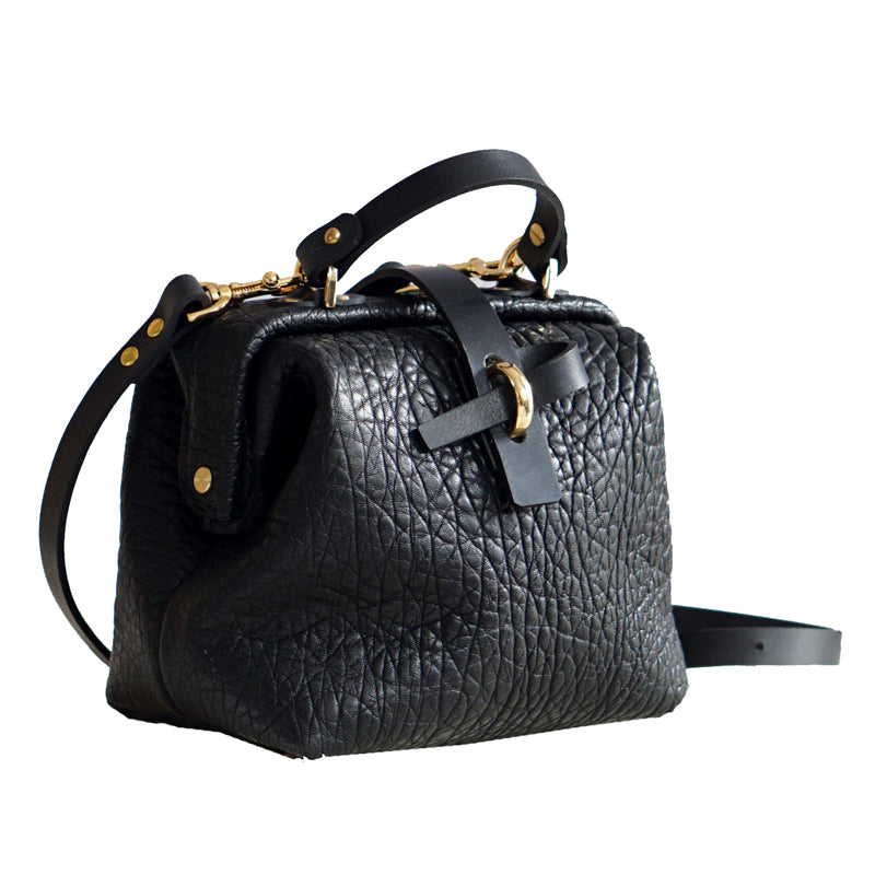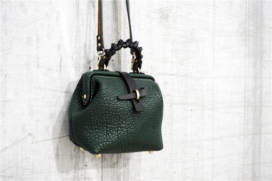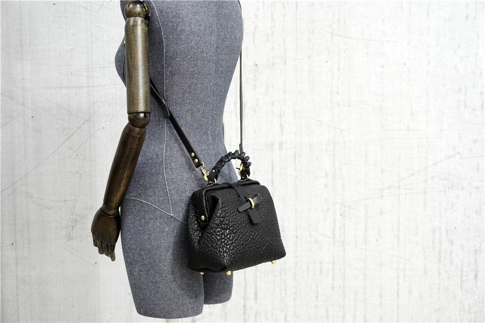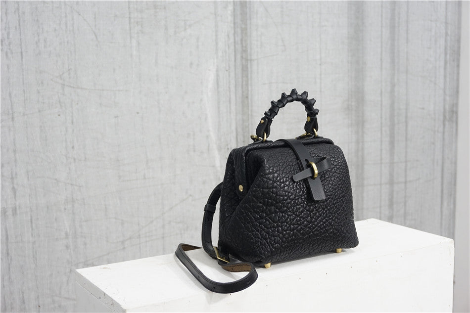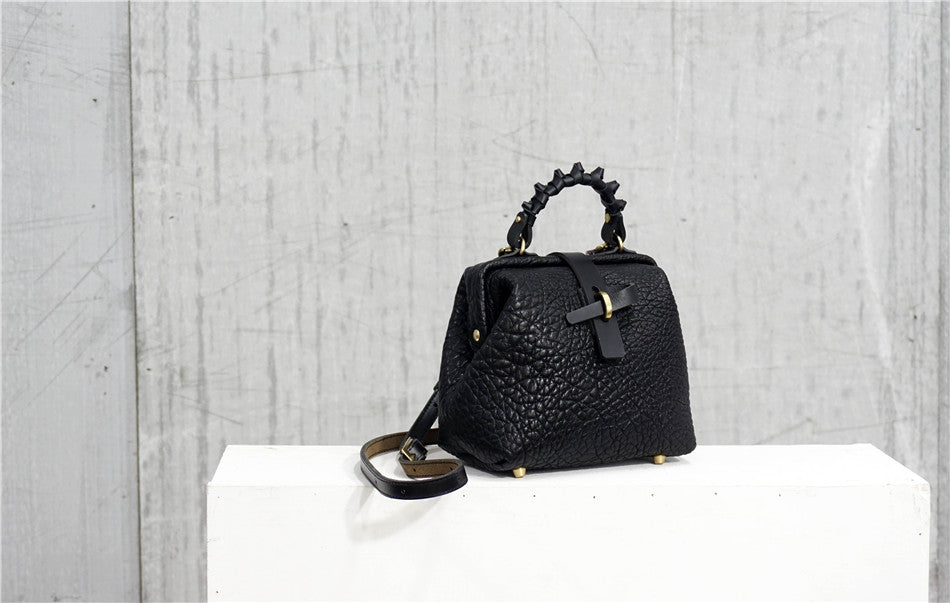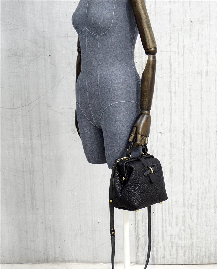 Handmade Womens Small Black Leather Doctor Handbag Side Purse Doctor Purse for Women