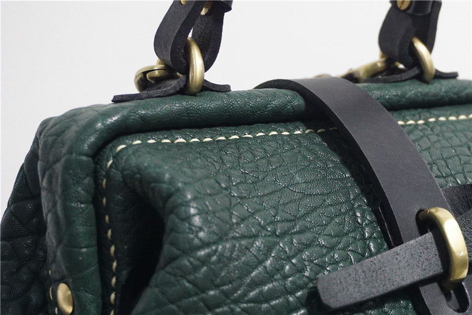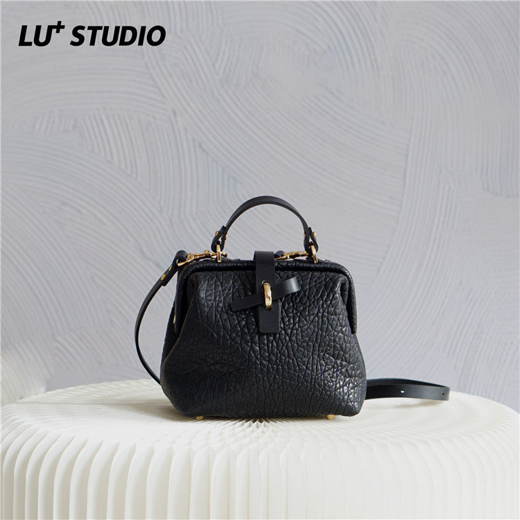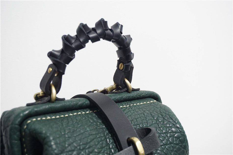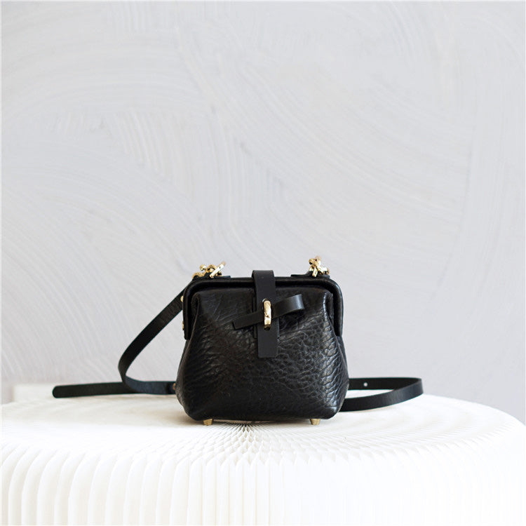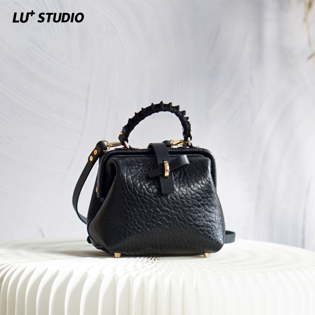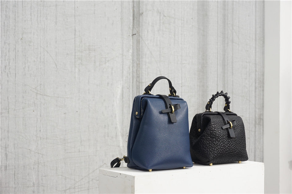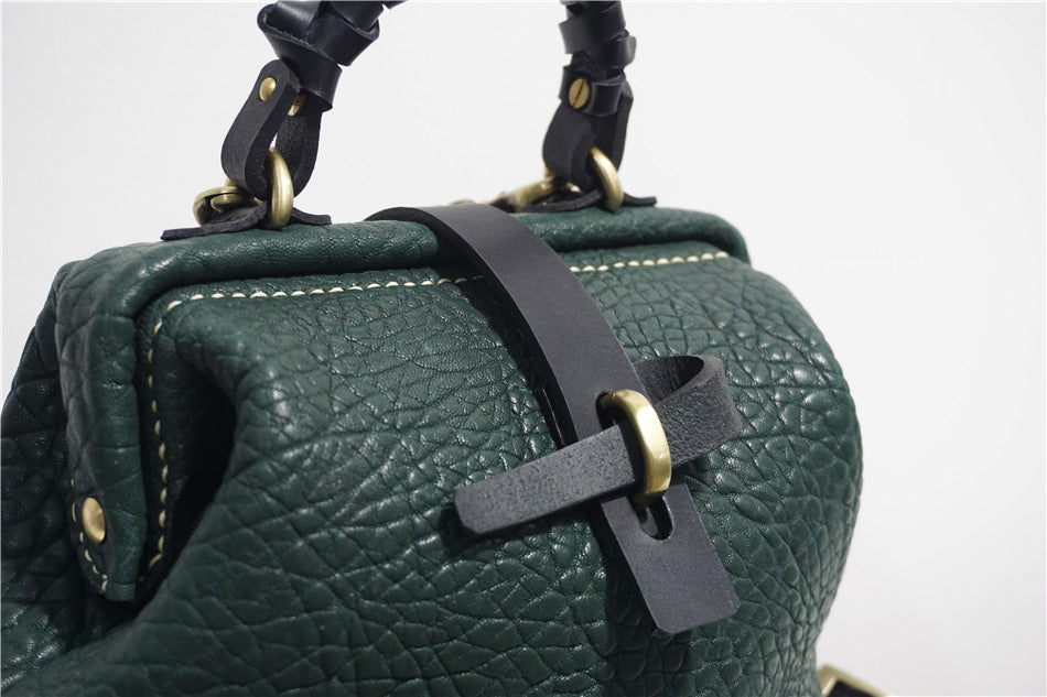 Handmade Womens Small Black Leather Doctor Handbag Side Purse Doctor Purse for Women