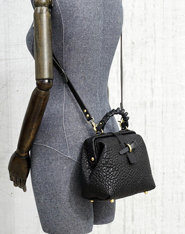 Style: Handmade Womens Small Black Leather Doctor Handbag Side Purse Doctor Purse for Women