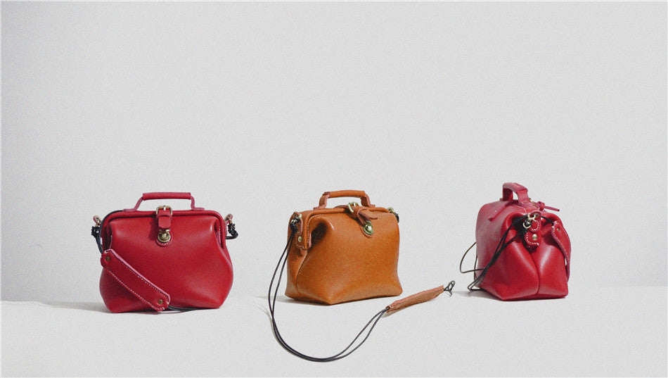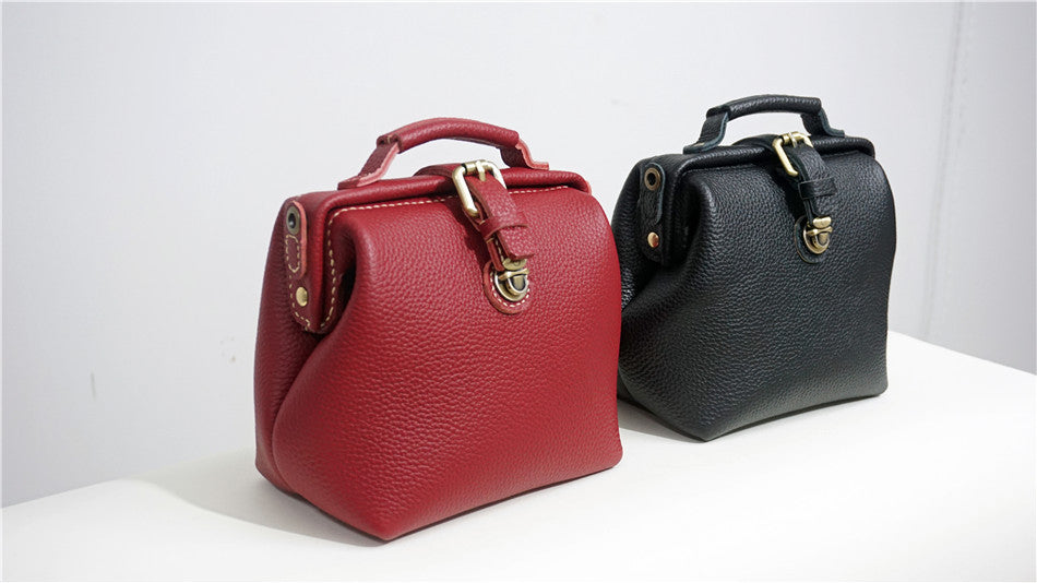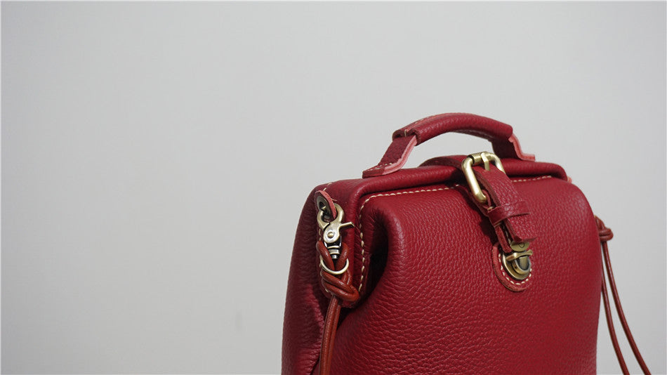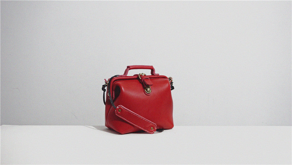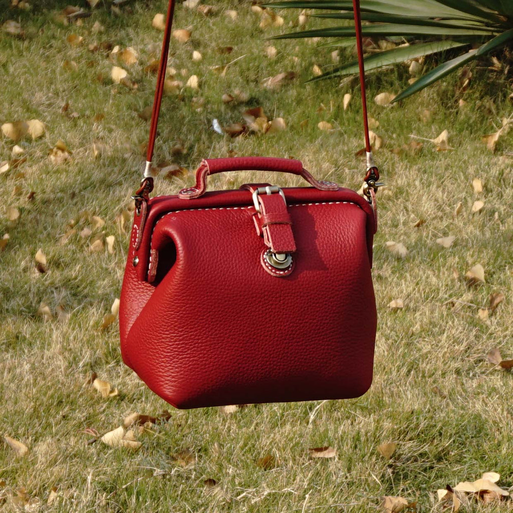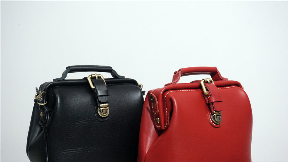 Handmade Womens Small Red Leather Doctor Handbag Side Purse Doctor Purse for Women