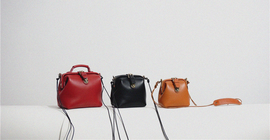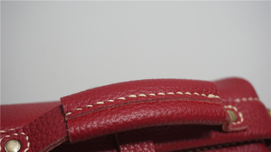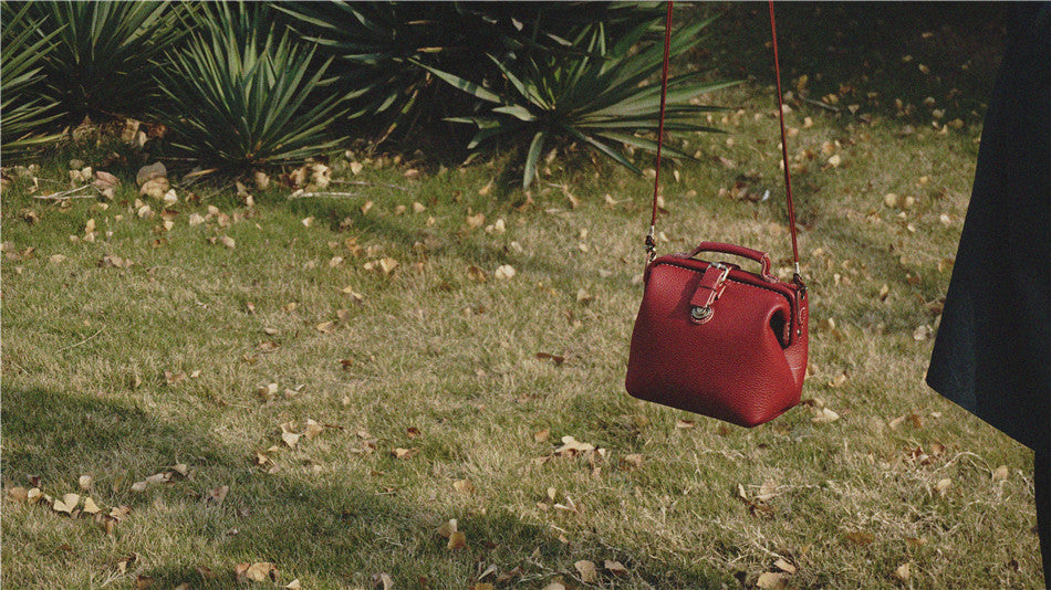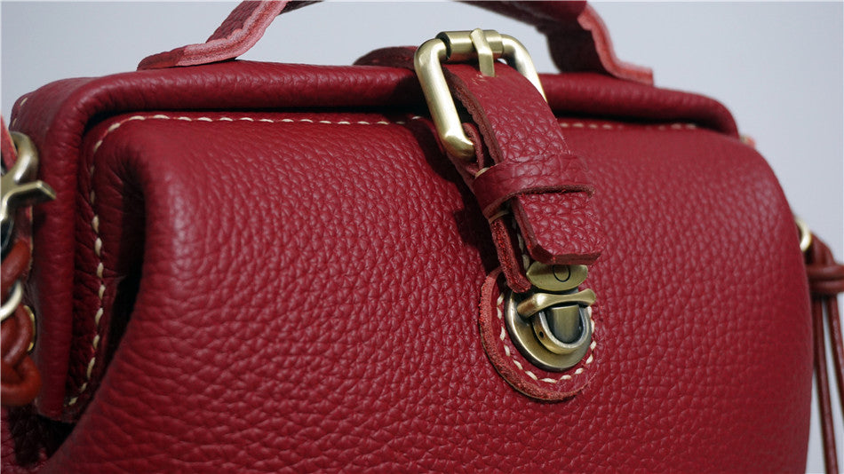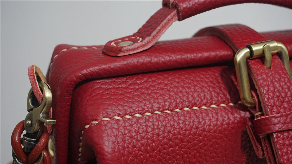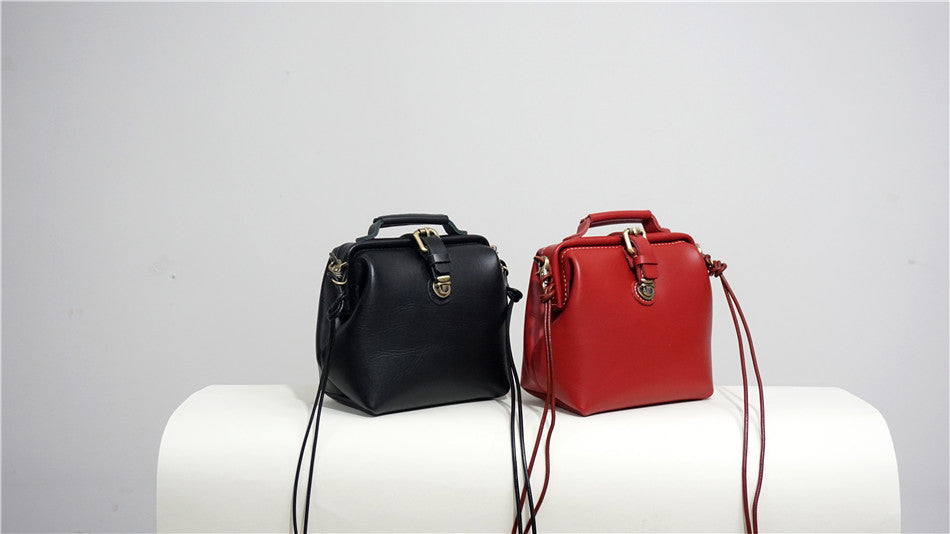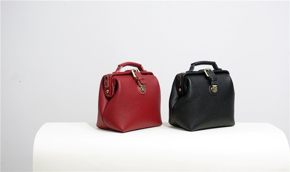 Handmade Womens Small Red Leather Doctor Handbag Side Purse Doctor Purse for Women