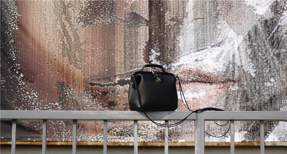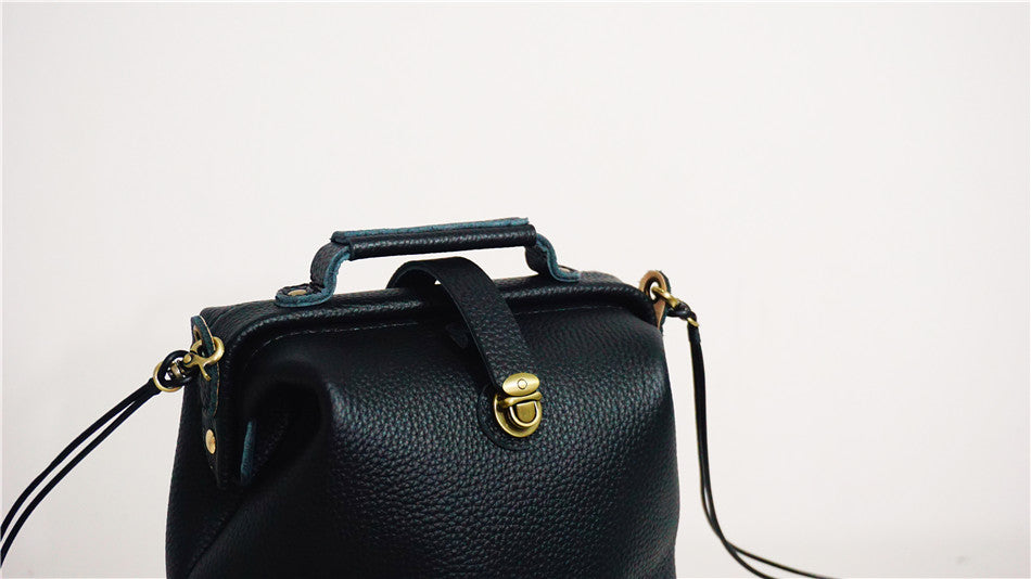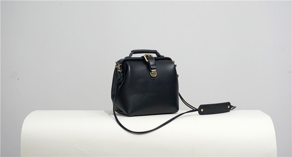 Style: Handmade Womens Small Black Leather Doctor Handbag Side Purse Doctor Purse for Women