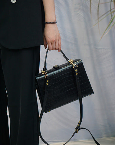 Design: Handmade Womens Stylish Black Leather Doctor Handbag Side Purses Doctor Purses for Women