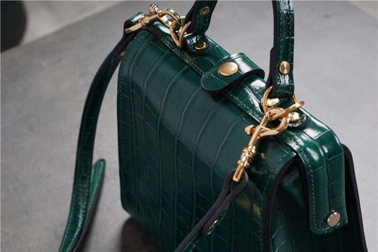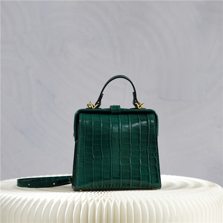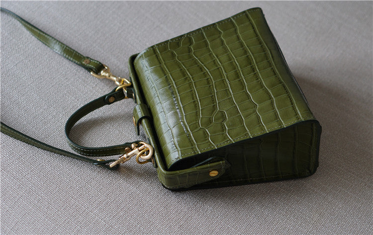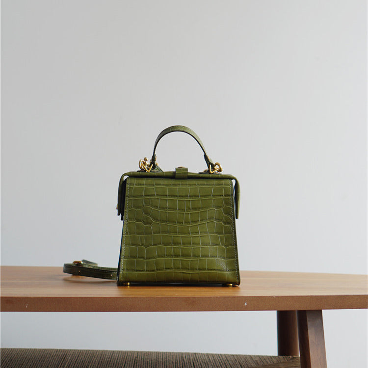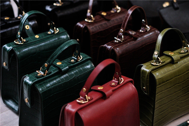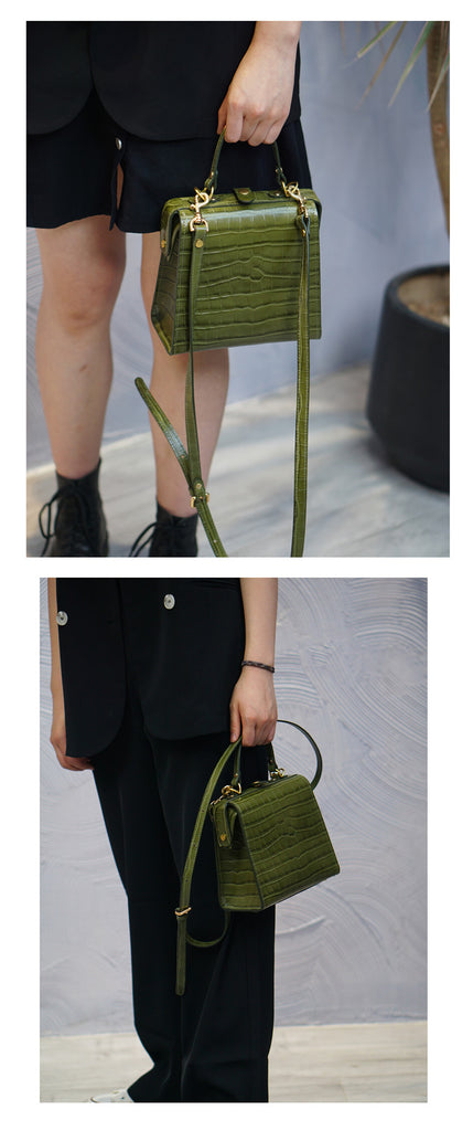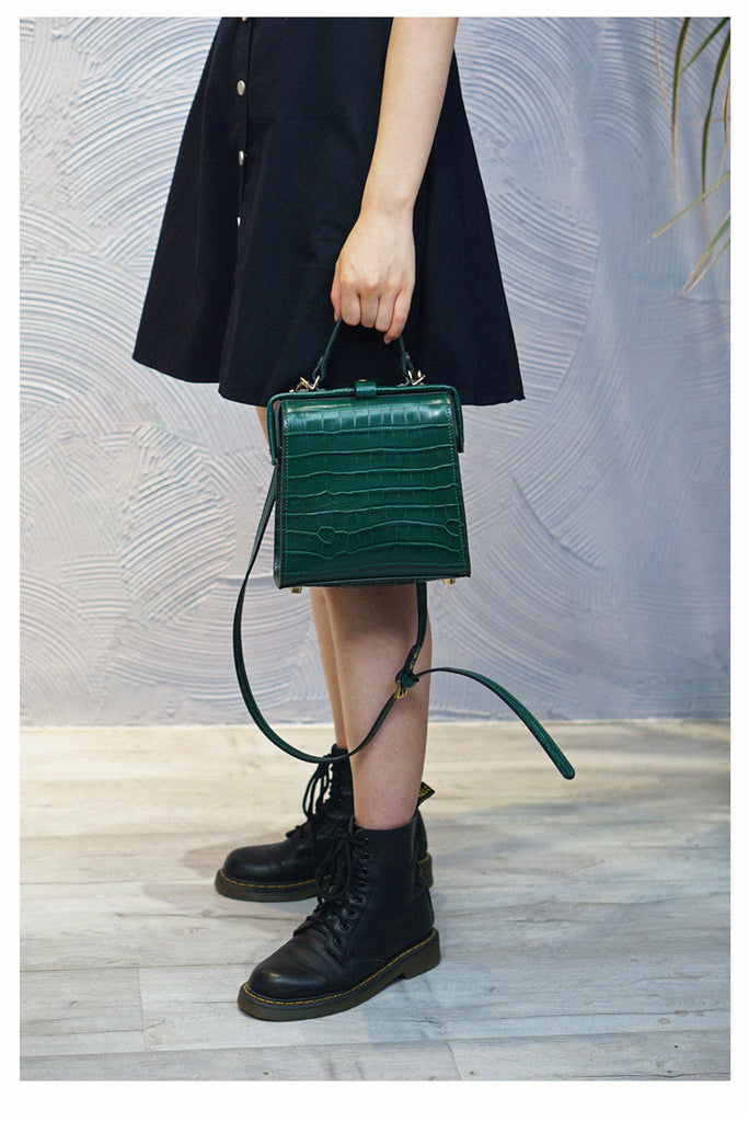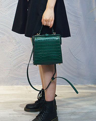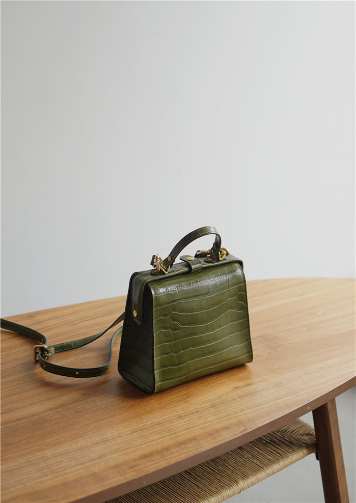 Handmade Womens Stylish Square Light Green Leather Doctor Handbag Side Purse Doctor Purse for Women