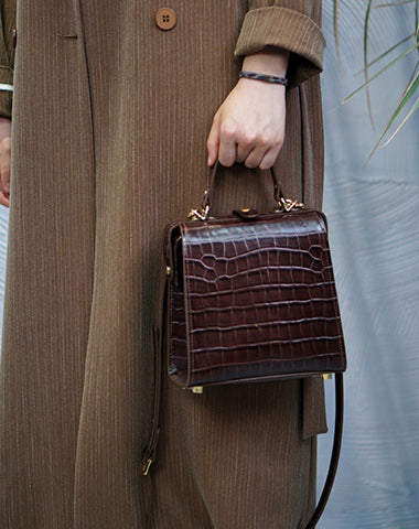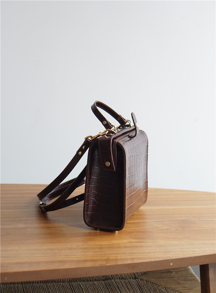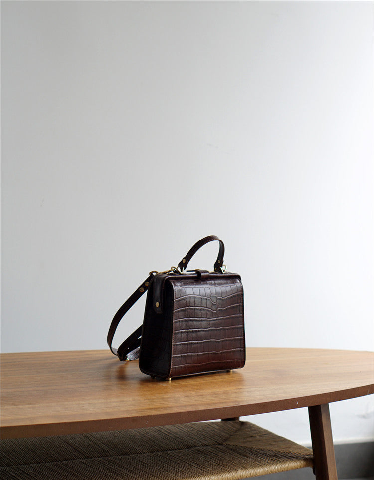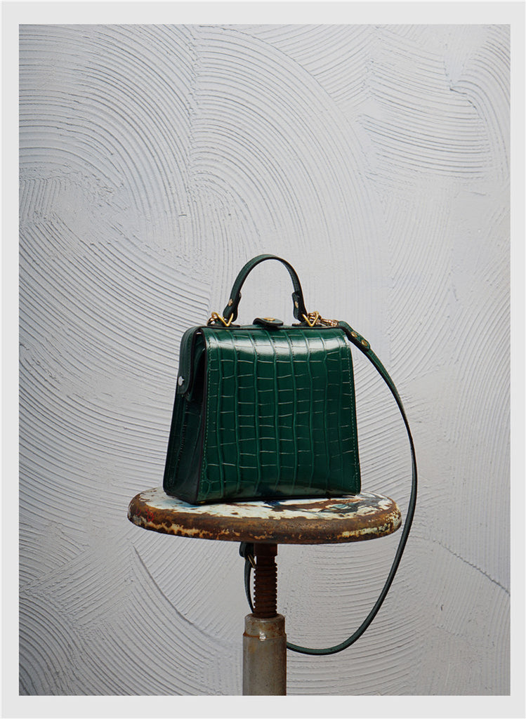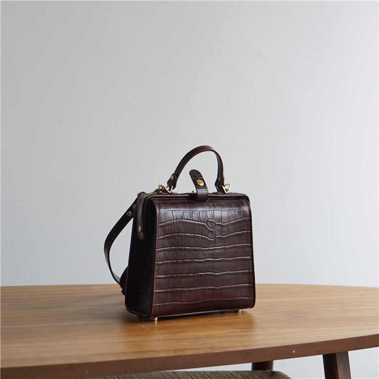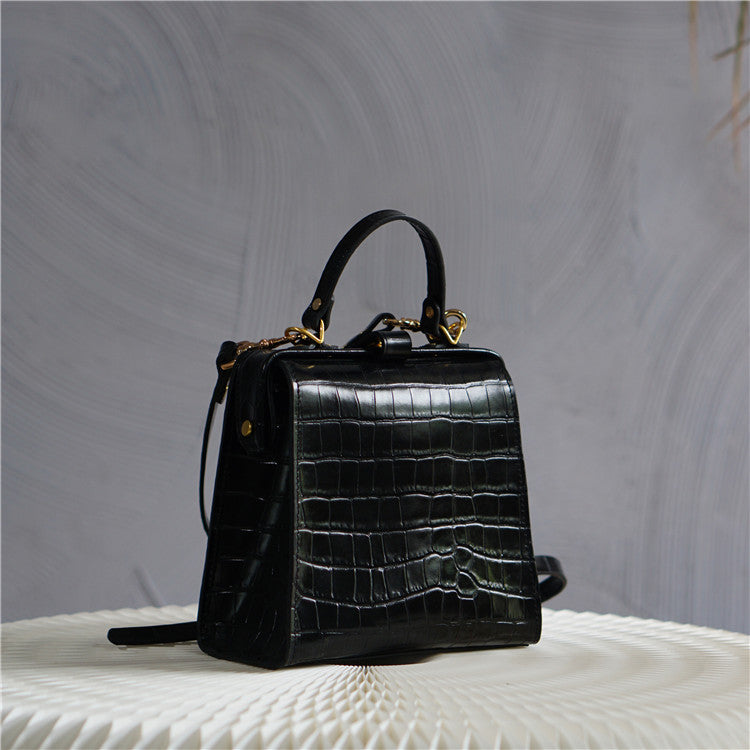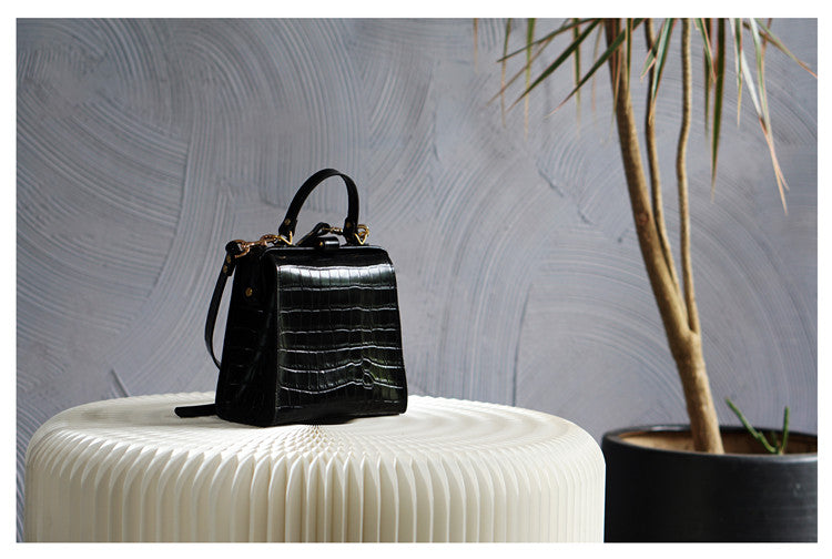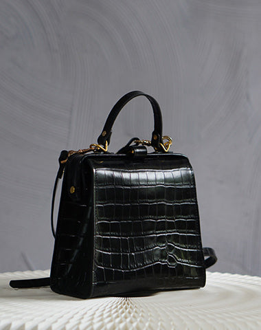 Handmade Womens Stylish Square Light Green Leather Doctor Handbag Side Purse Doctor Purse for Women