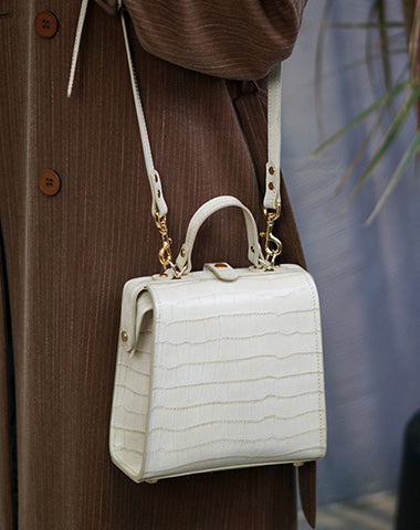 Design: Handmade Womens Stylish Square White Leather Doctor Handbag Side Purse Doctor Purse for Women