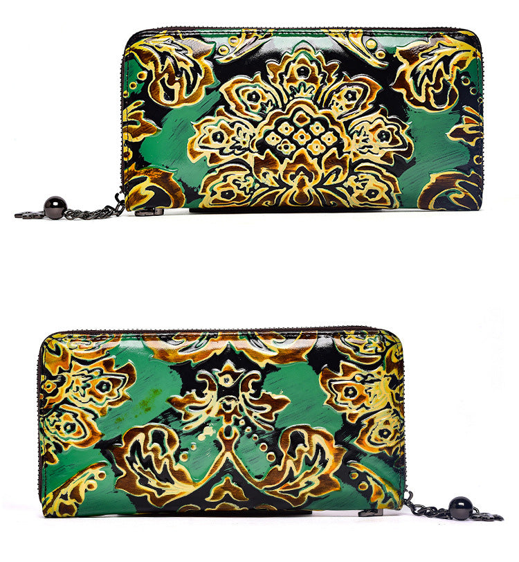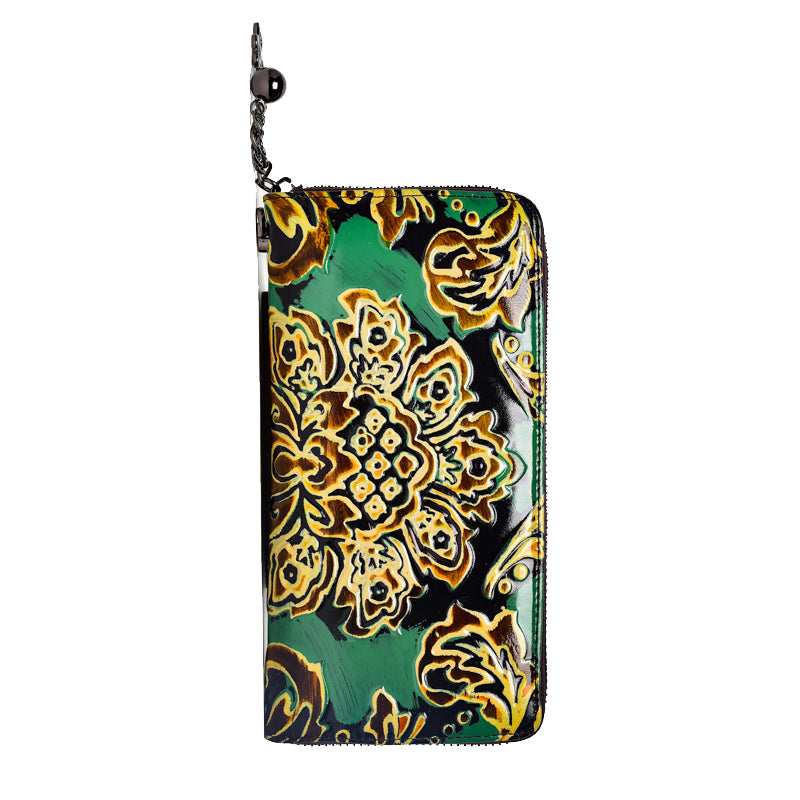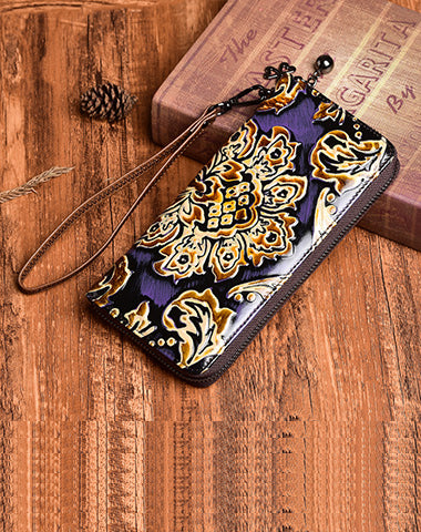 Style: Handmade Womens Sunflower Purple Leather Zip Around Wallet Wristlet Wallet Floral Ladies Zipper Clutch Wallet for Women