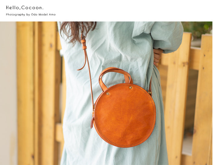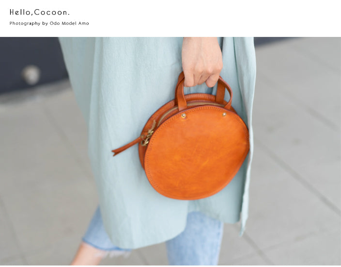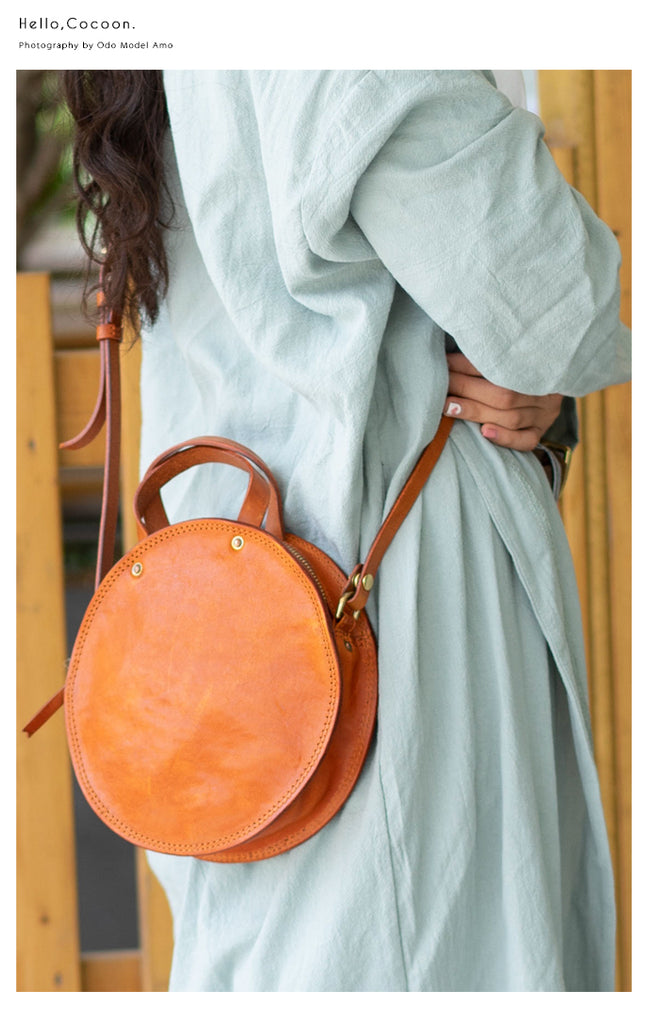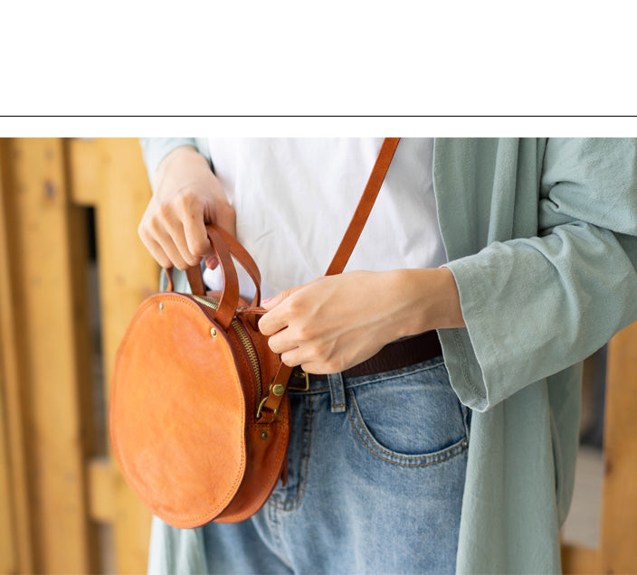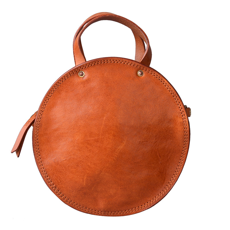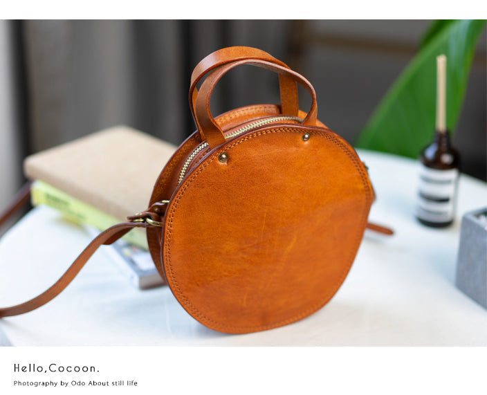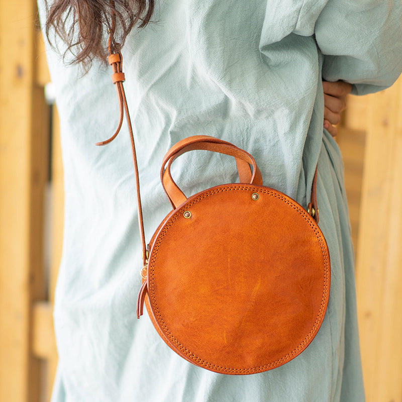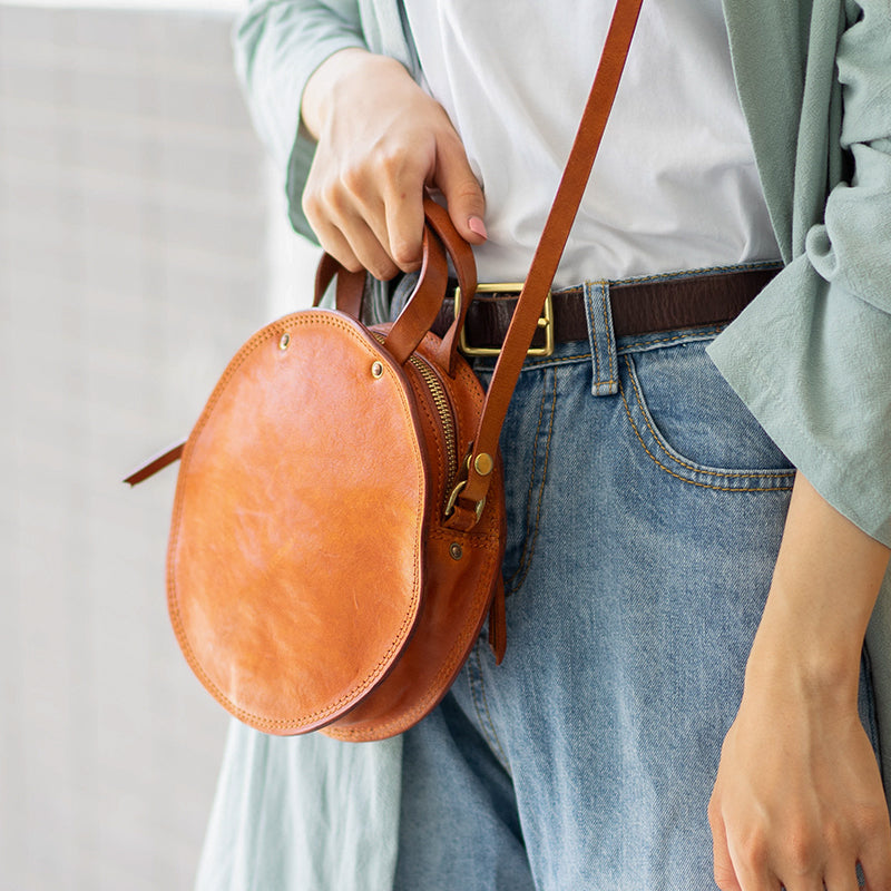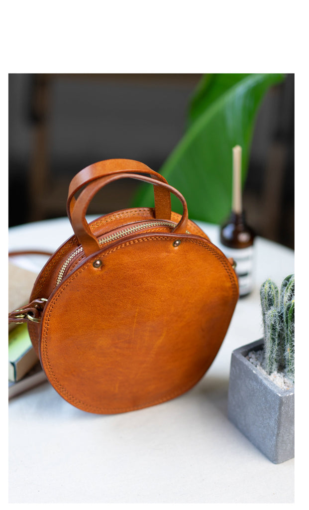 Design: Handmade Womens Tan Leather Round Handbag Purses Tan Round Shoulder Bag Crossbody Purse for Women