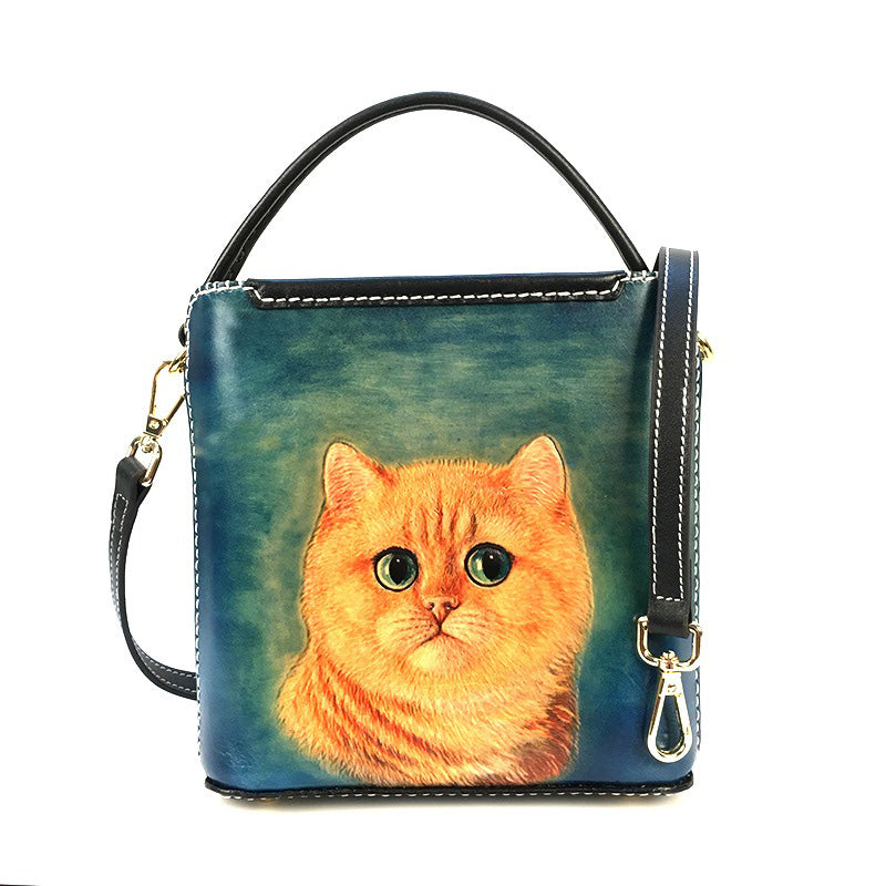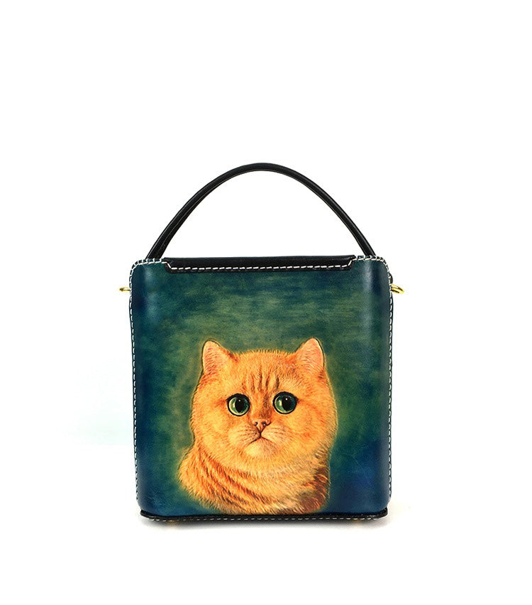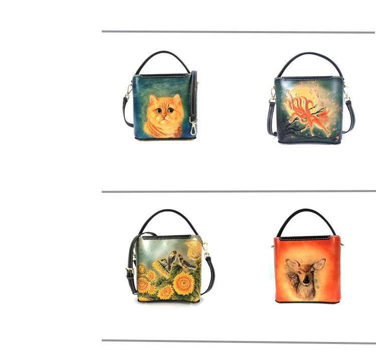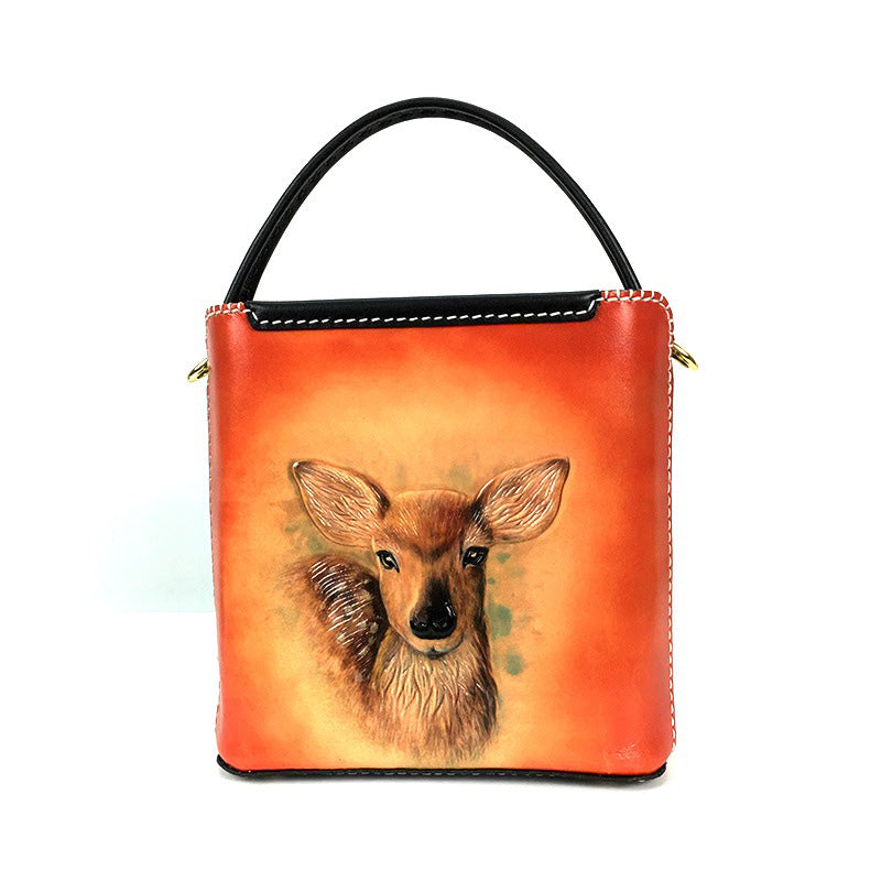 Style: Handmade Womens Tooled Leather Square Handbag Purse Fox Crossbody Bag for Women