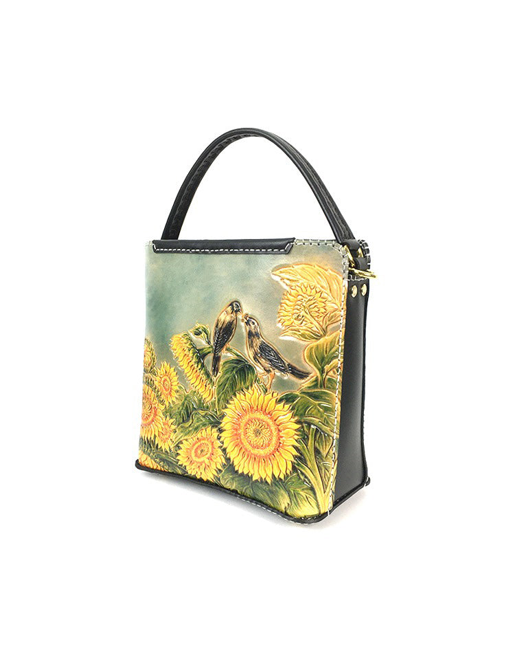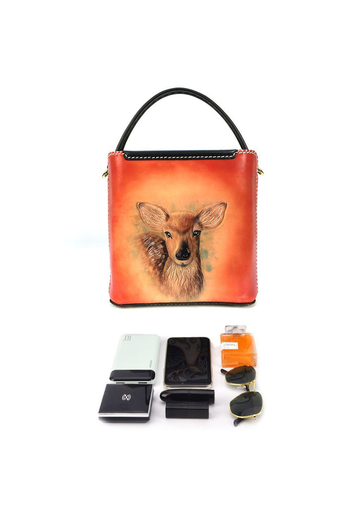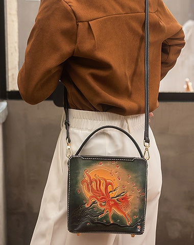 Design: Handmade Womens Tooled Leather Square Handbag Purse Fox Crossbody Bag for Women