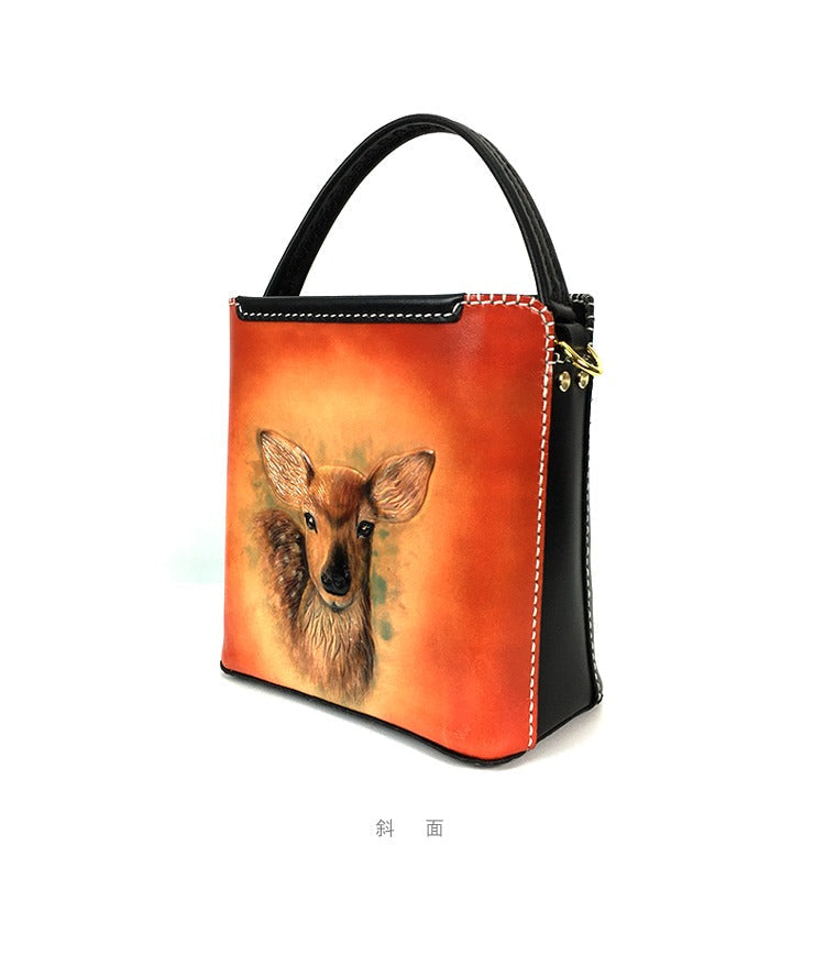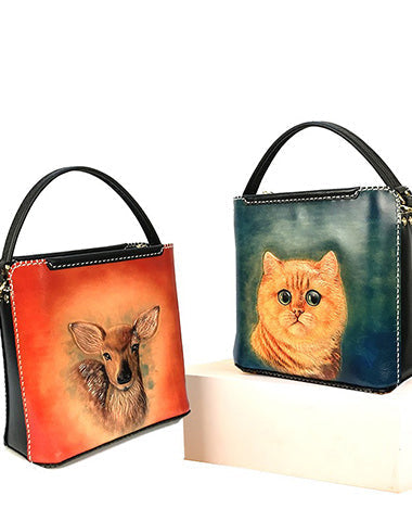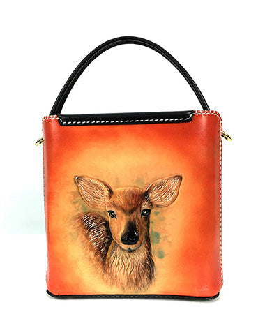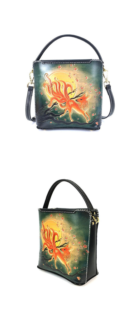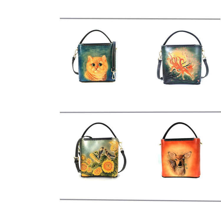 Style: Handmade Womens Tooled Leather Square Handbag Purse SunFlower Crossbody Bag for Women