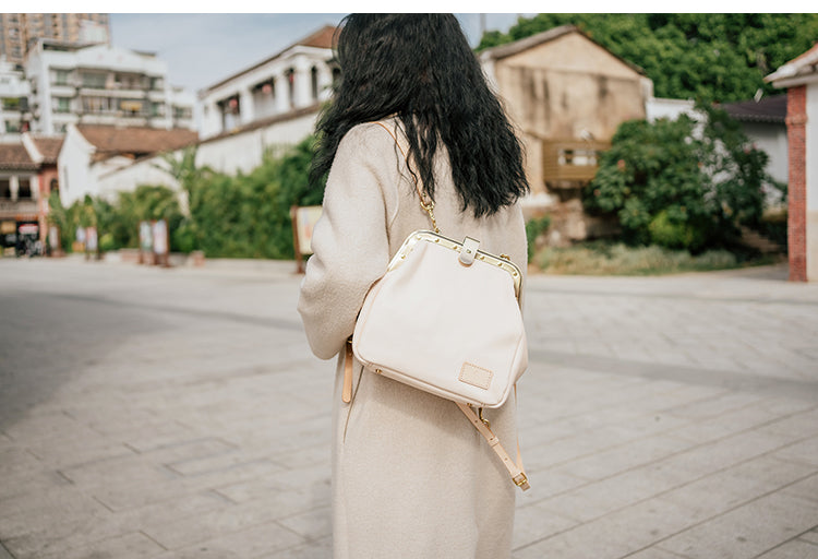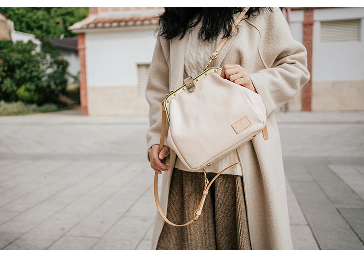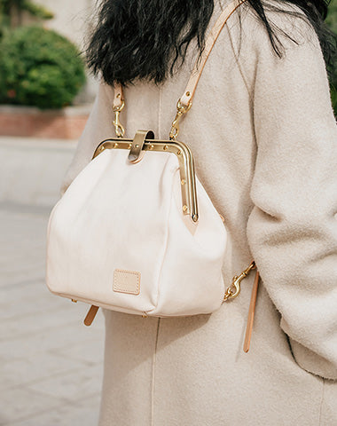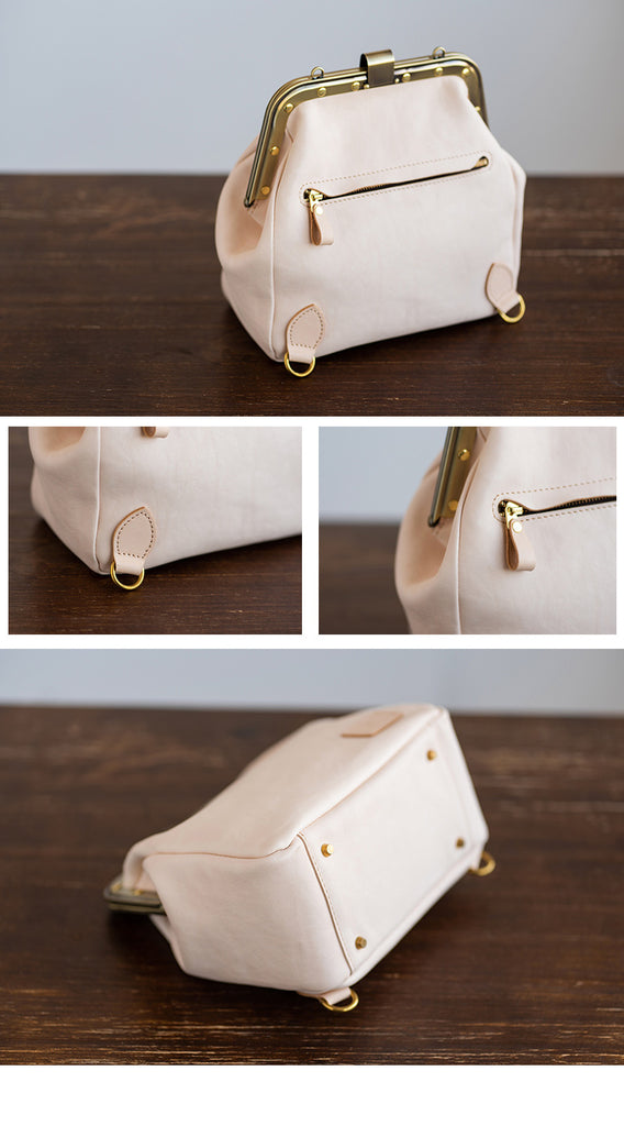 Design: Handmade Womens White Leather Doctor Backpack Purse Shoulder Doctor Handbag for Women