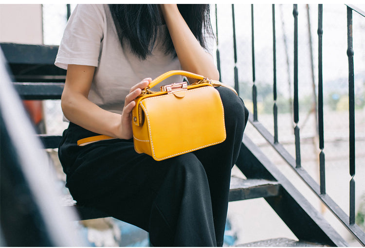Style: Handmade Womens Yellow Leather Doctor Purse Small Side Bag doctor bags for women