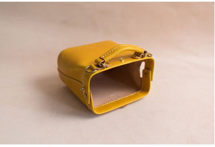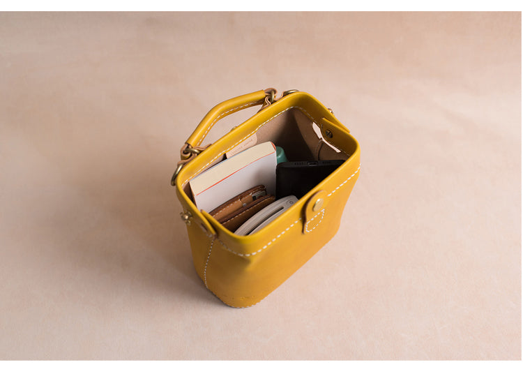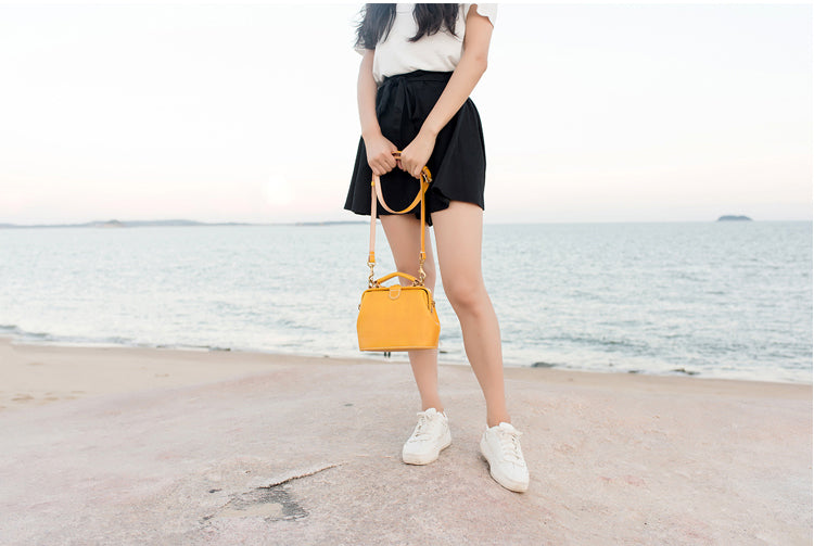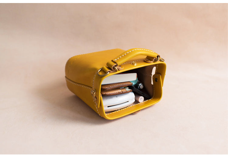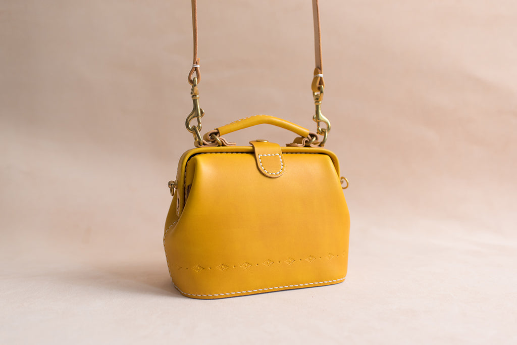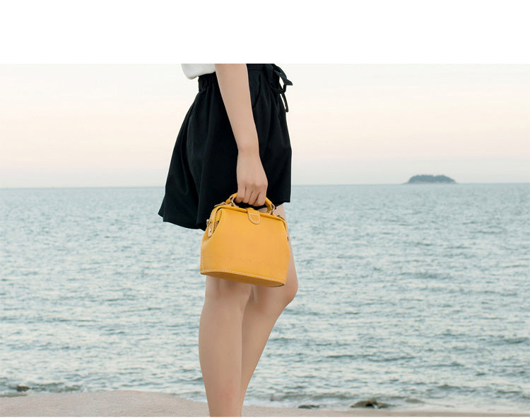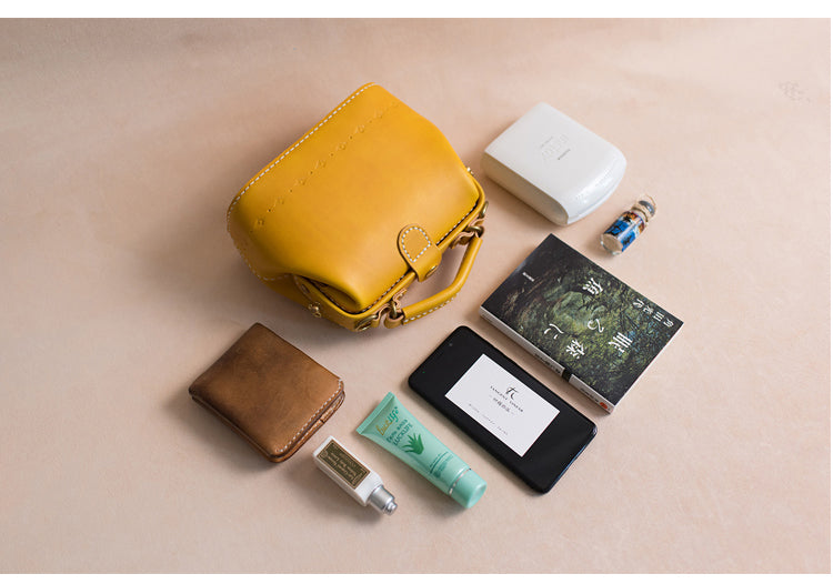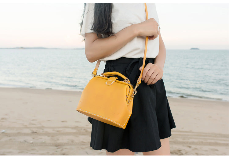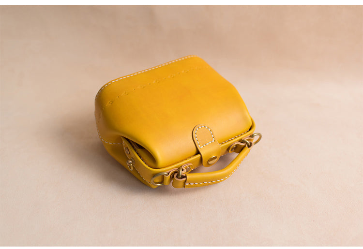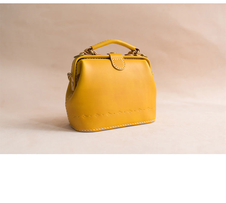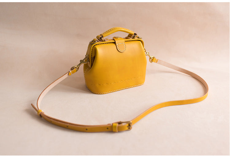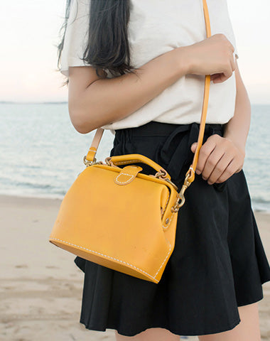 Style: Handmade Womens Yellow Leather Mini doctor Handbag shoulder doctor bags for women