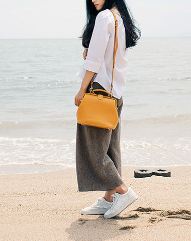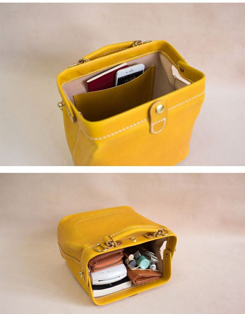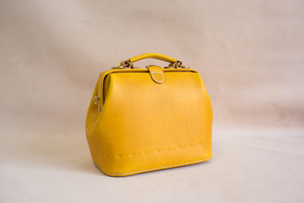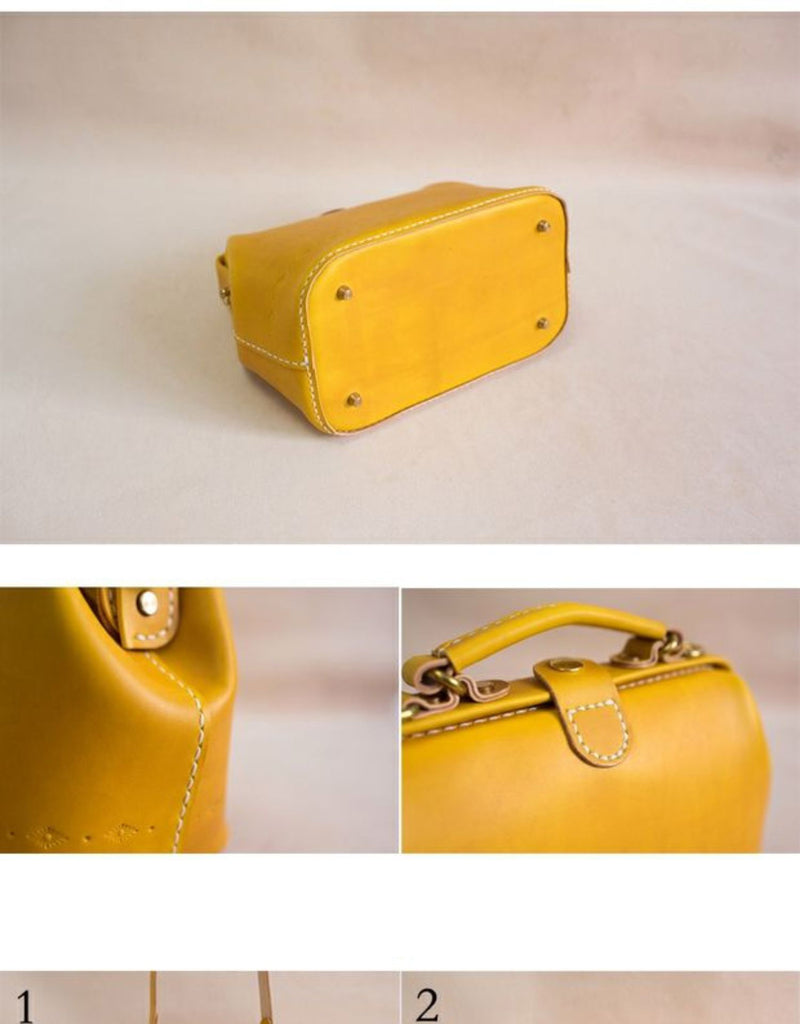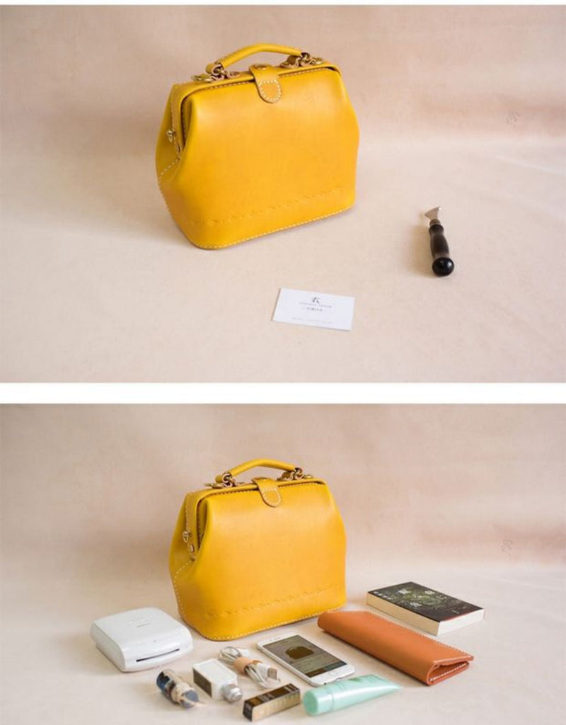 Style: Handmade Womens Yellow Leather Small doctor Handbag shoulder doctor bags for women
