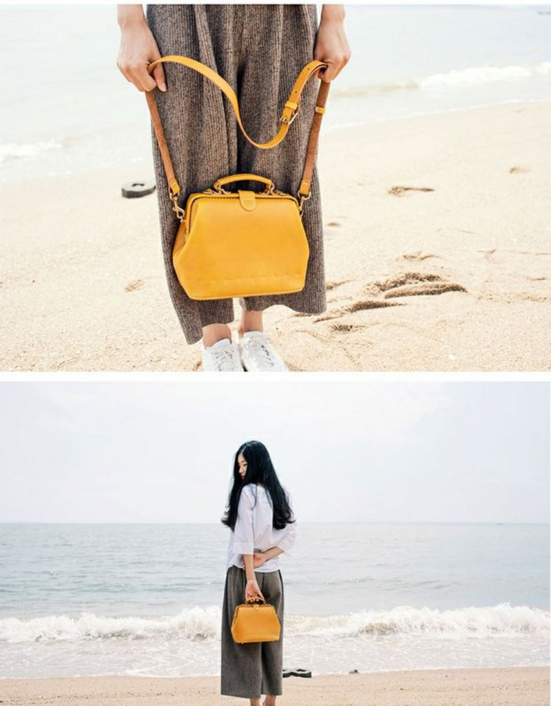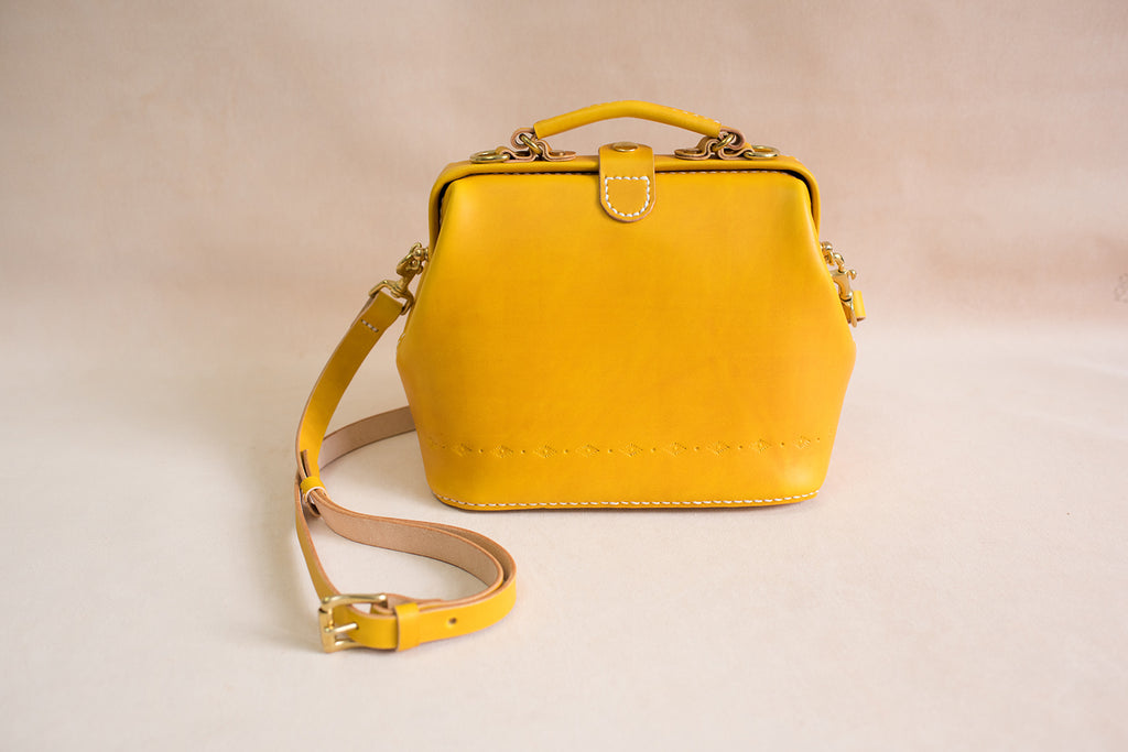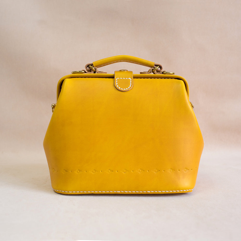 Design: Handmade Womens Yellow Leather Small doctor Handbag shoulder doctor bags for women