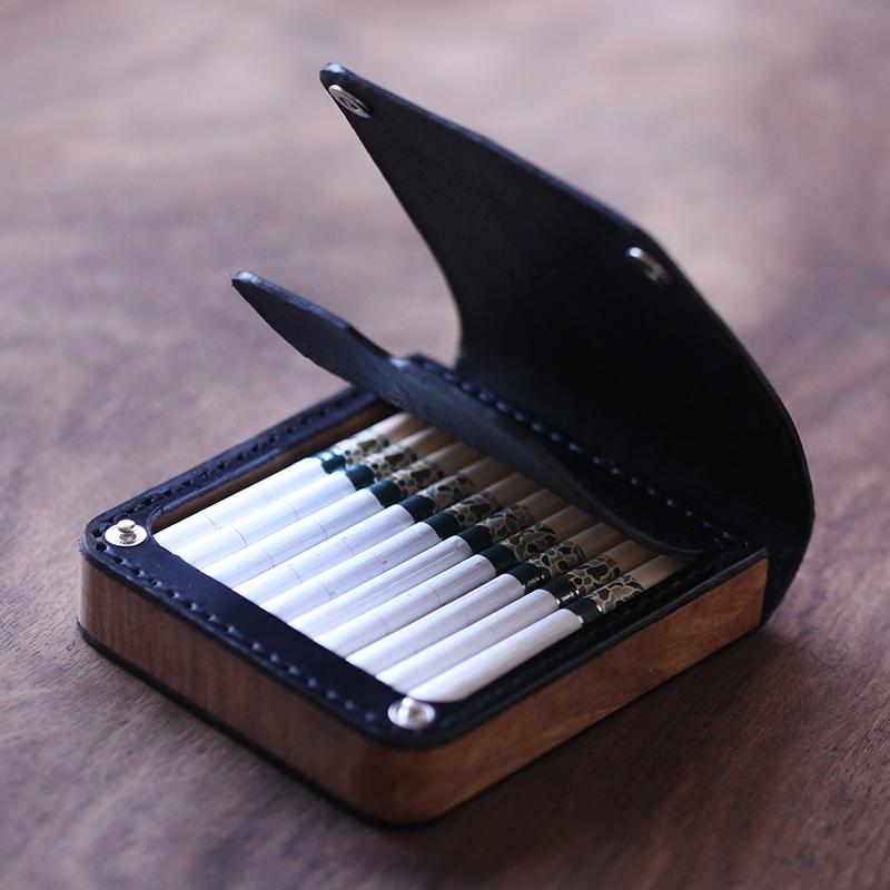 Style: Handmade Wooden Leather Mens 7pcs Cigarette Case Cool Custom Cigarette Holder for Men
