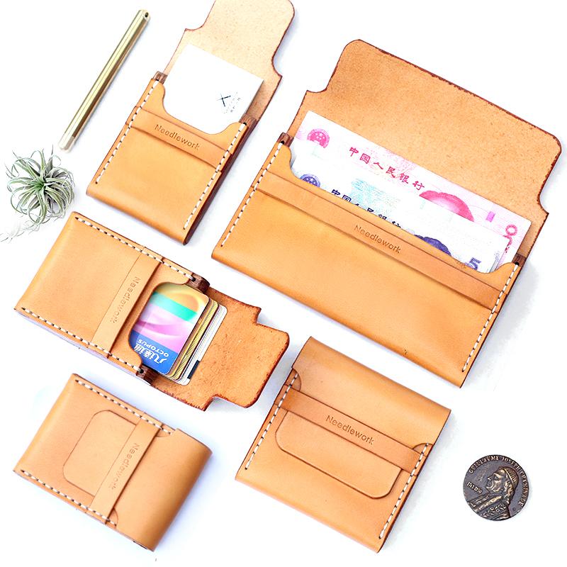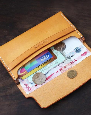 Design: Cool Handmade Wooden Brown Leather Mens Wallet Small Card Holder Coin Wallet for Men