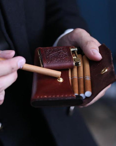 Style: Handmade Wooden Leather Mens 7pcs Cigarette Case Cool Custom Cigarette Holder for Men