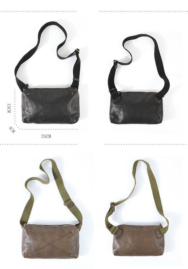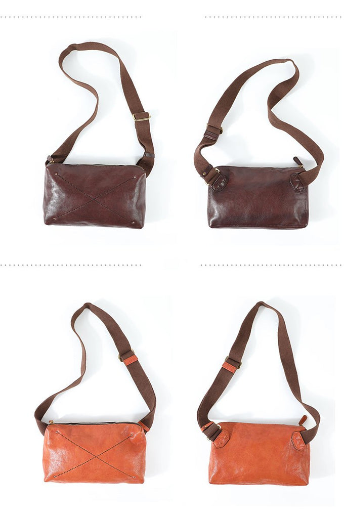 Design: Handstitched Brown LEATHER MEN'S 8 INCHES Small Side BAGs Vertical MESSENGER BAG Chest BAG FOR MEN