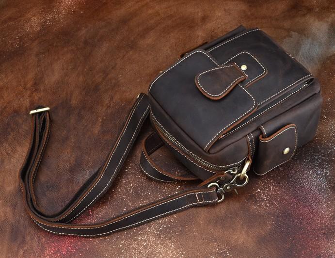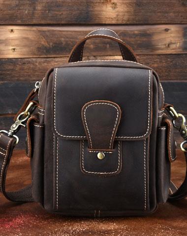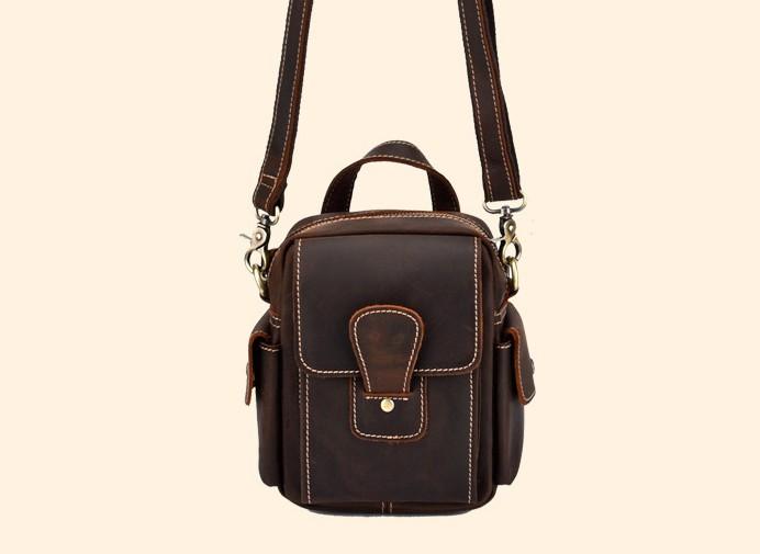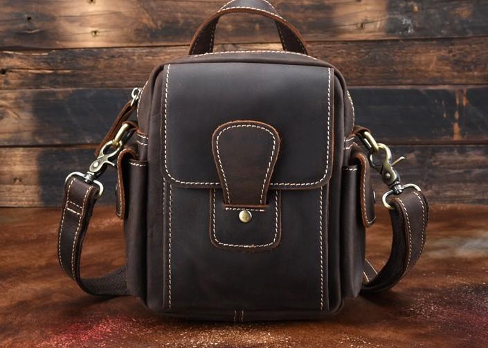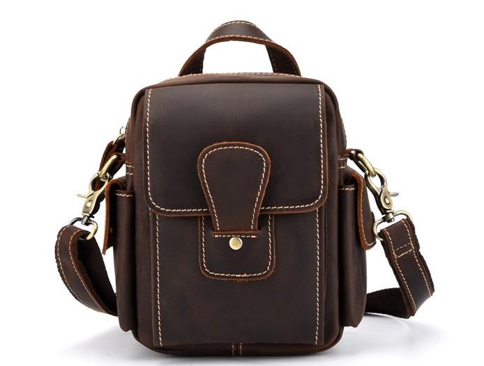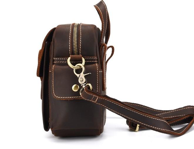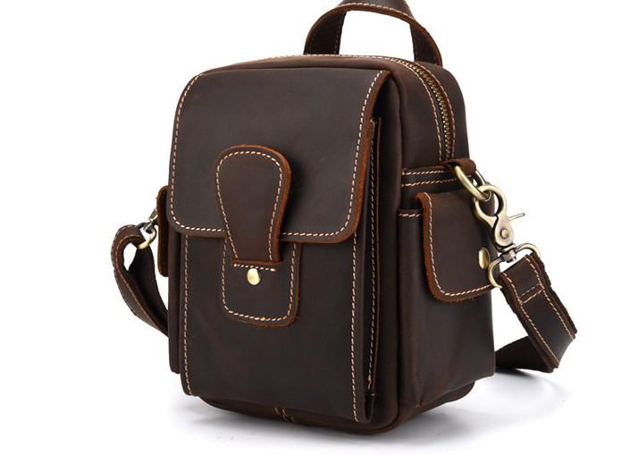 Design: Vintage Brown Leather Mens Small Side Bag Tablet Bag Belt Bag Shoulder Bag For Men