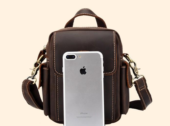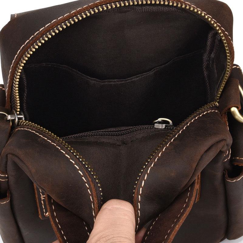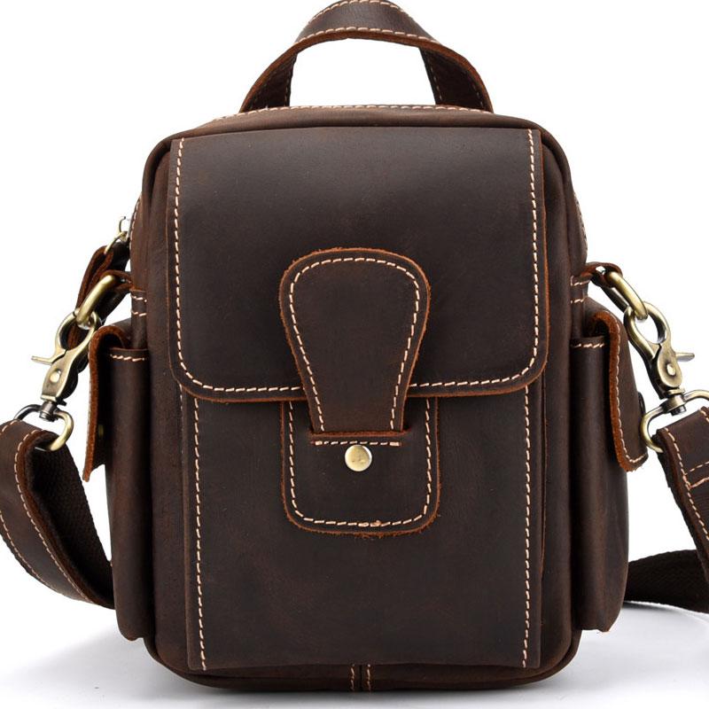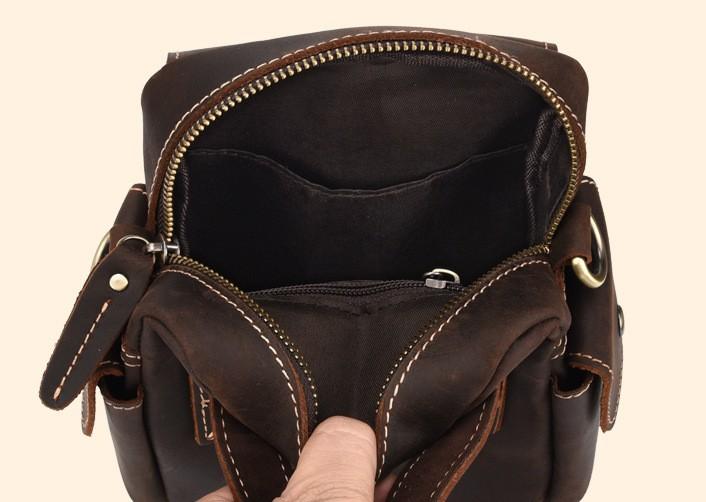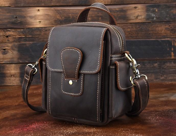 Style: Vintage Brown Leather Mens Small Side Bag Tablet Bag Belt Bag Shoulder Bag For Men