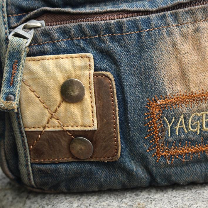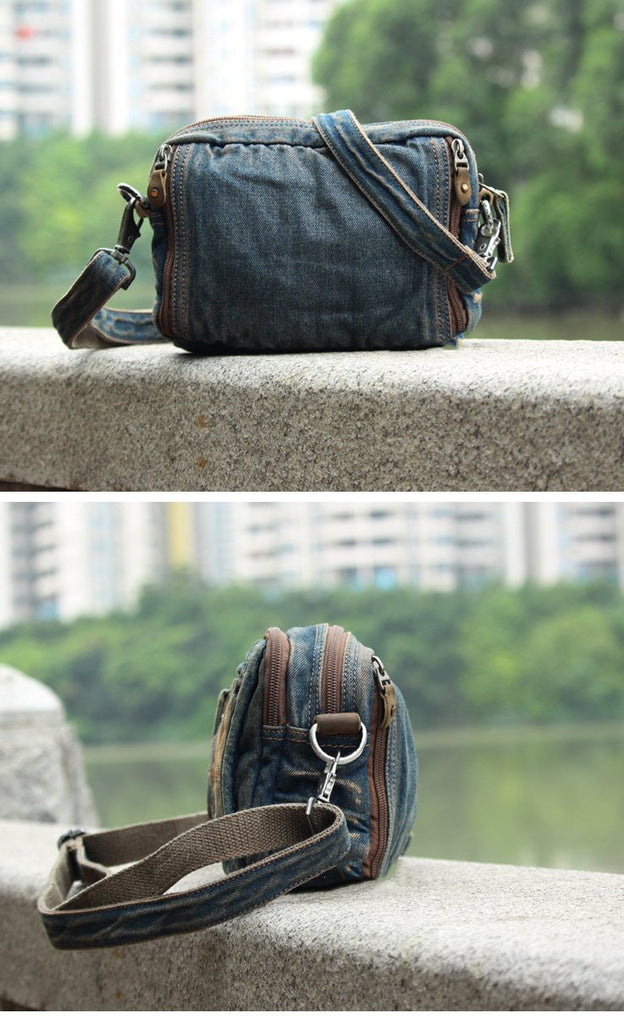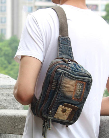Design: Jean Denim Blue Mens Small Sling Bag Chest Bag Jean One Shoulder Backpacks For Men