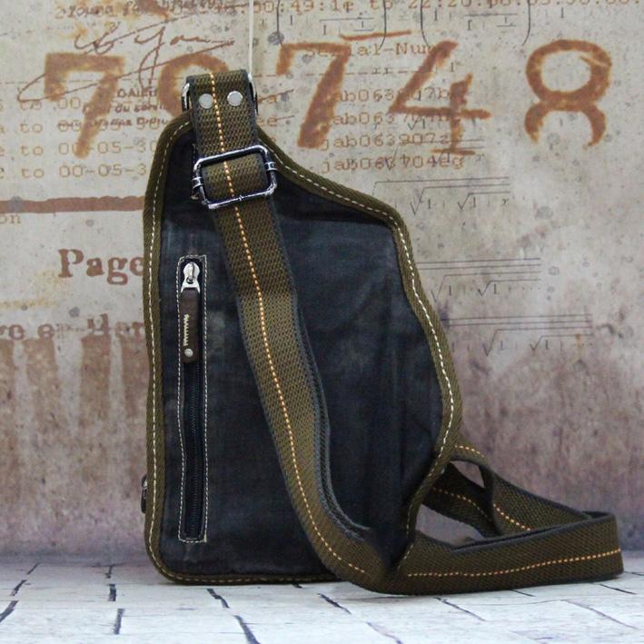Design: Jeans Black Mens Chest Bag Dark Green Messenger Bag One Backpack Shoulder For Men