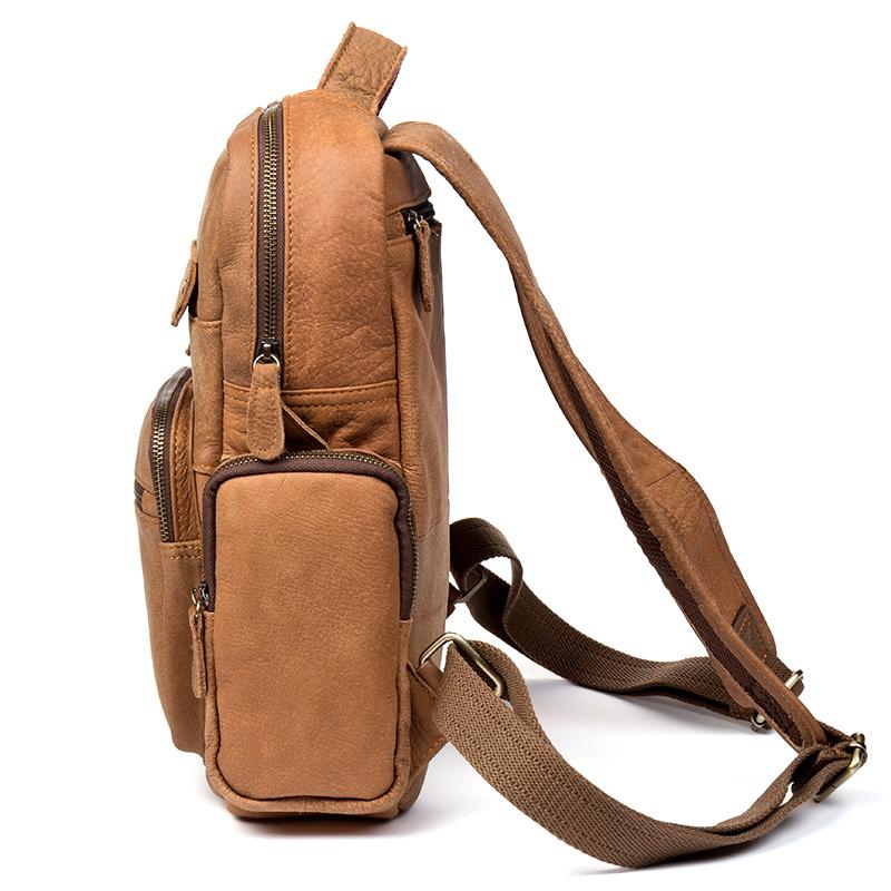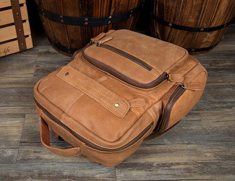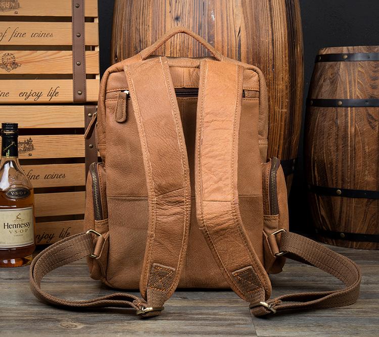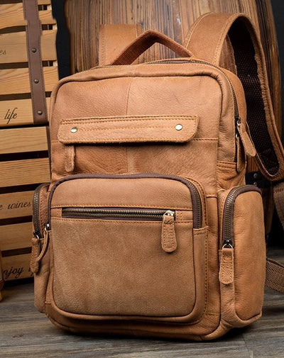 Casual Khaki Leather Mens 13 inches School Backpacks Tan Computer Backpack for Men