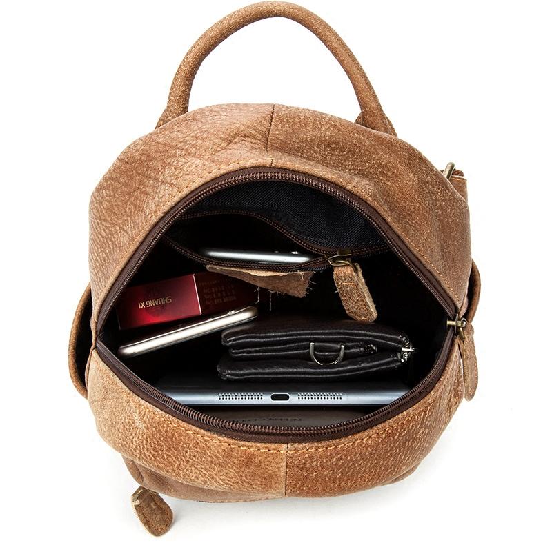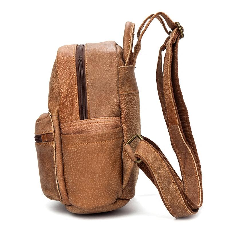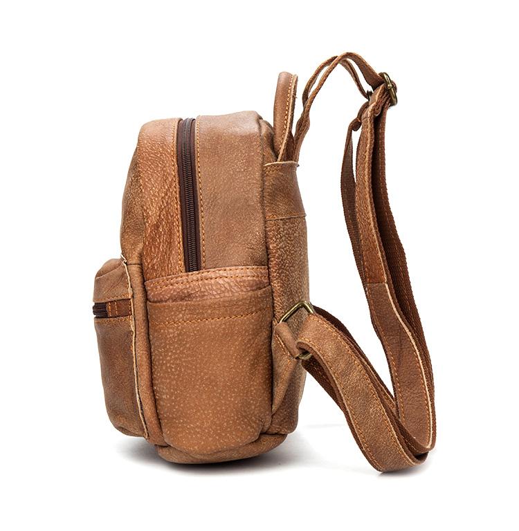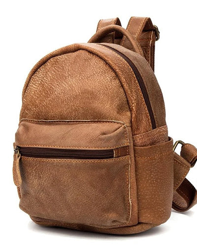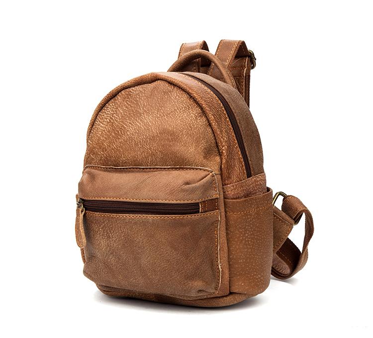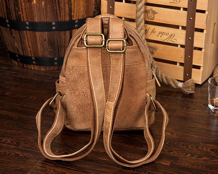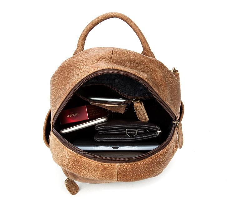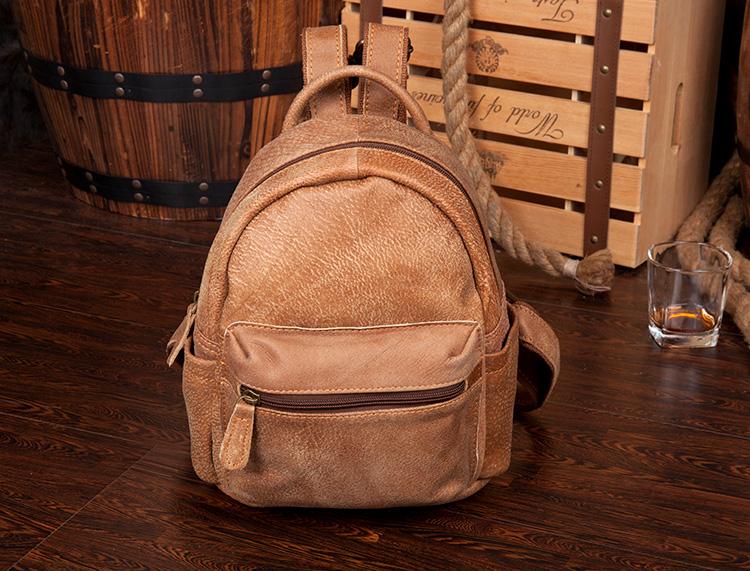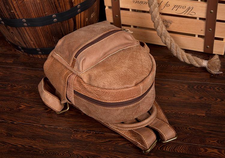 Khaki Fashion Mens Leather Small Travel Backpacks Cute College Backpacks School Backpack for men