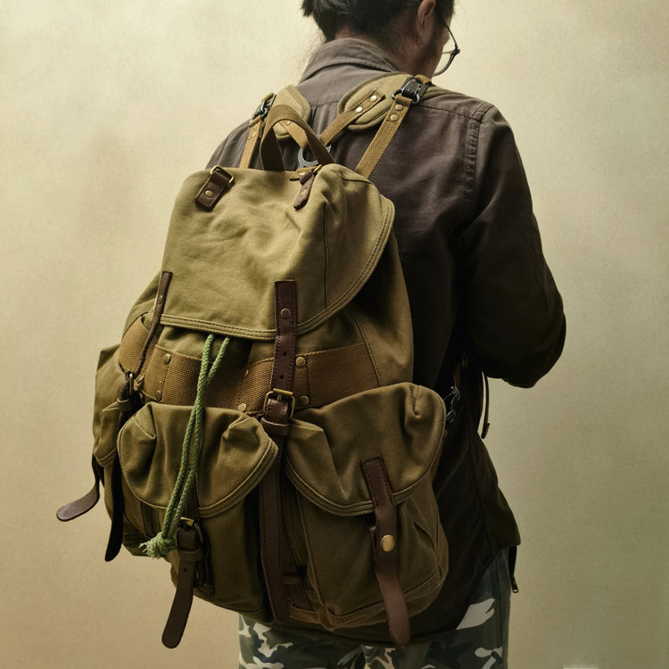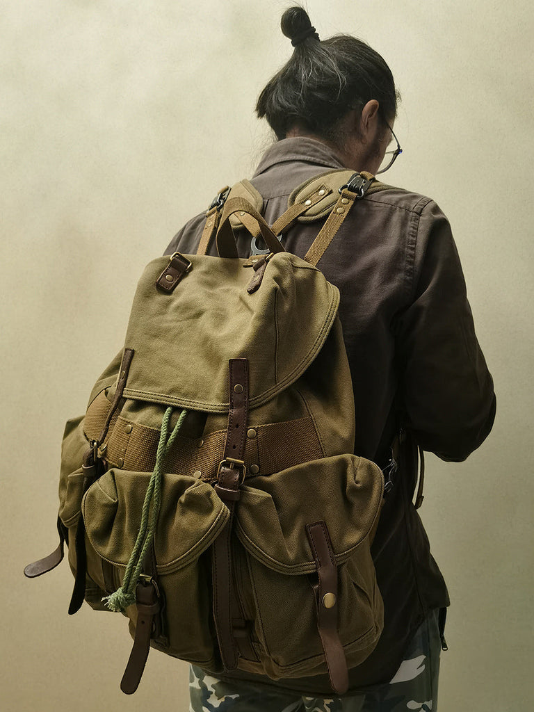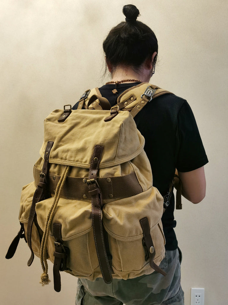 Designed with the adventurer in mind, this backpack is not only practical but also comfortable to wear. The adjustable shoulder straps are padded for extra comfort, ensuring that you can carry your gear without straining your shoulders. The durable canvas material is both lightweight and sturdy, making it easy to carry even when fully loaded.